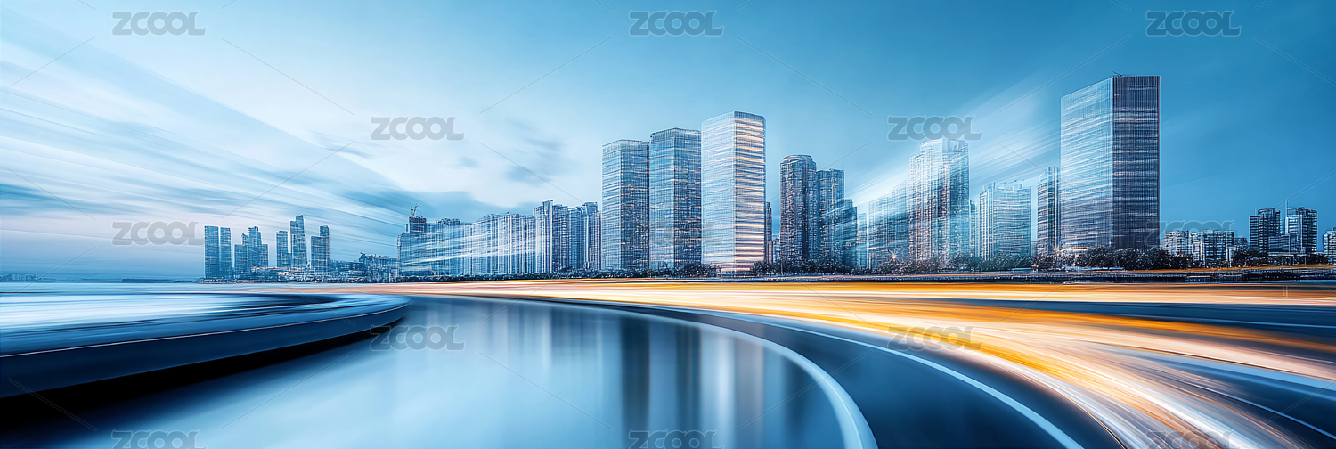 城市天际线发光道路和多彩城市生活概念