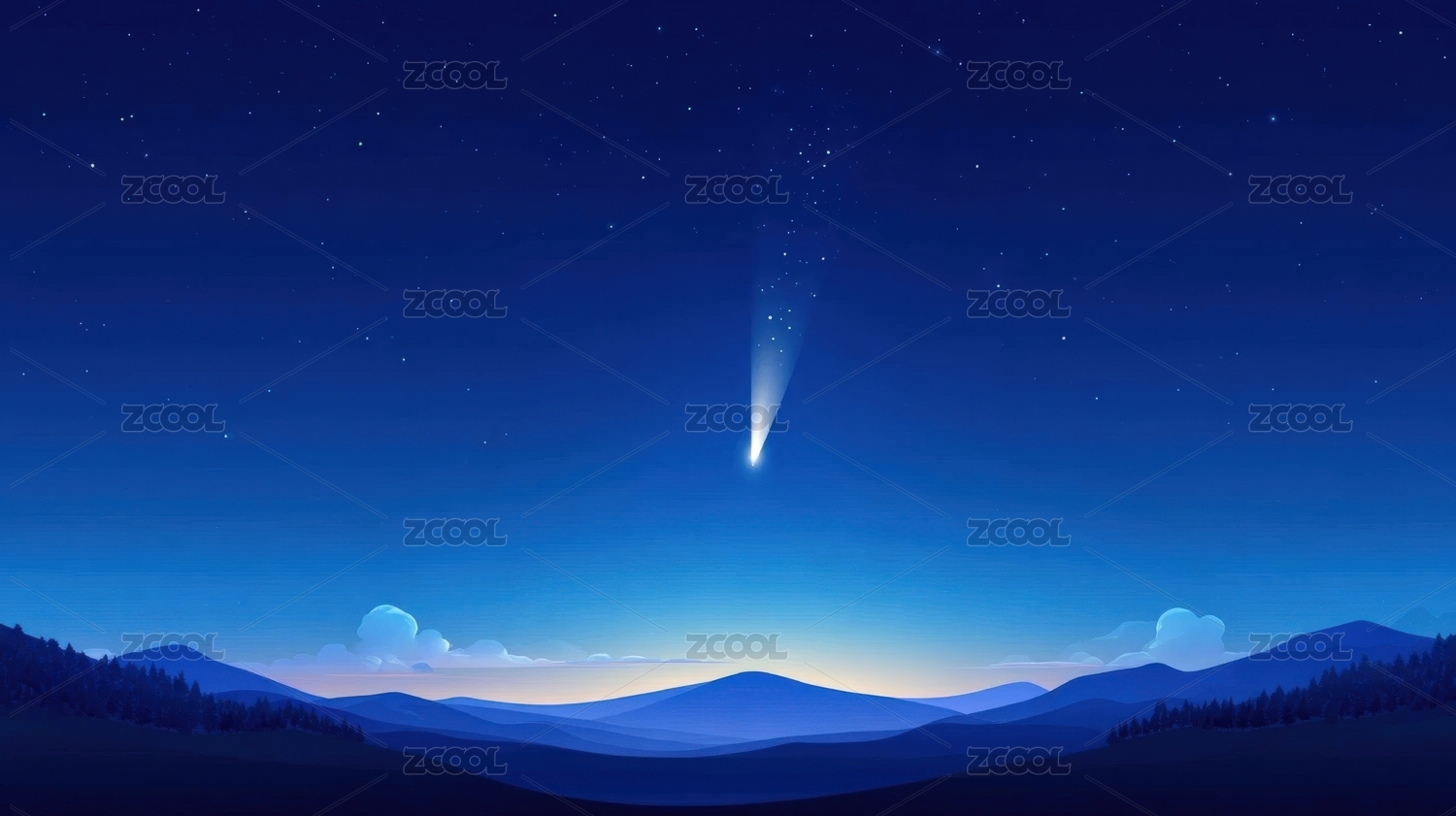 流星,山林,夜空,星空,森林,山脉,黄昏,自然,美景,宁静
