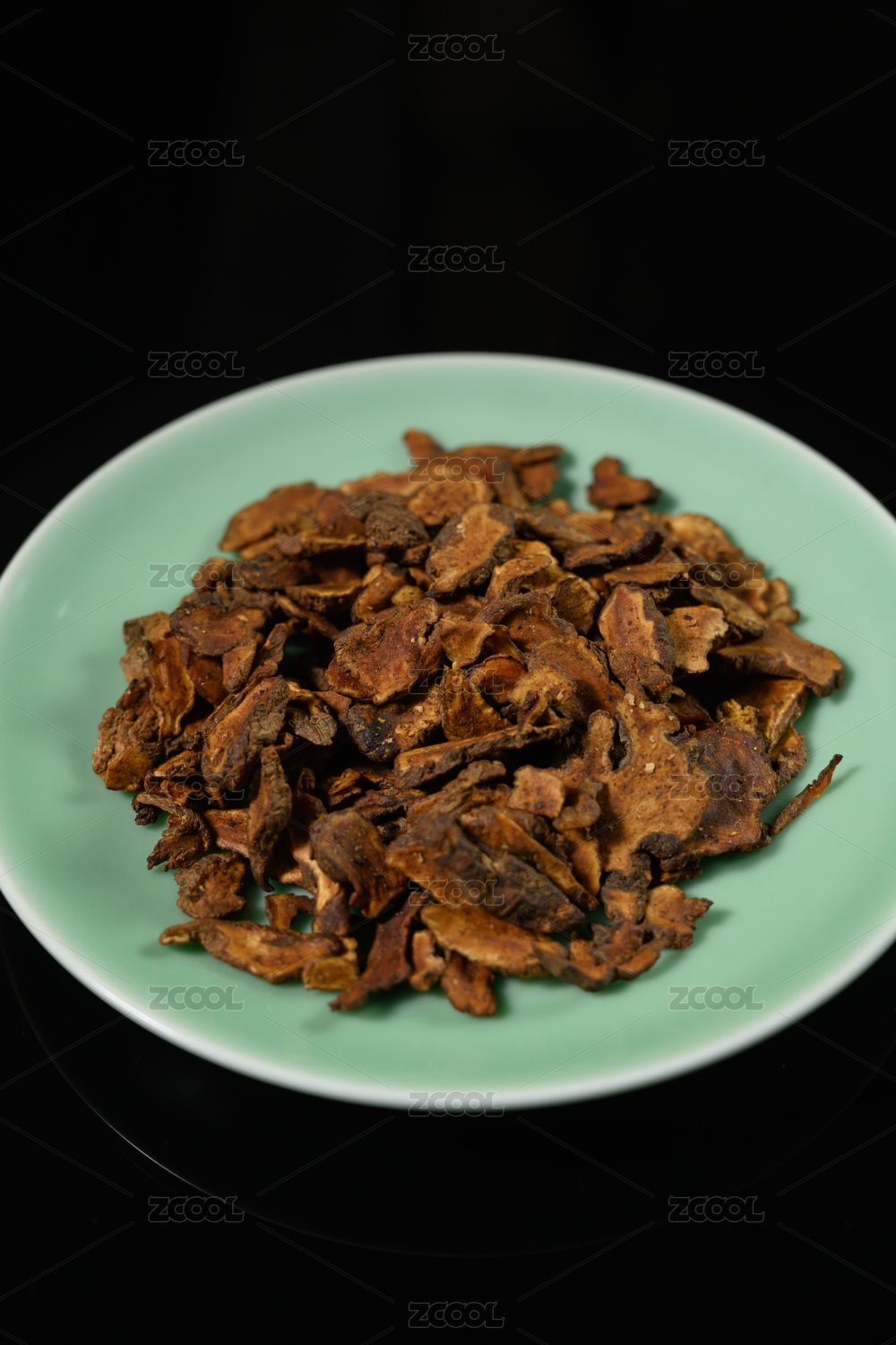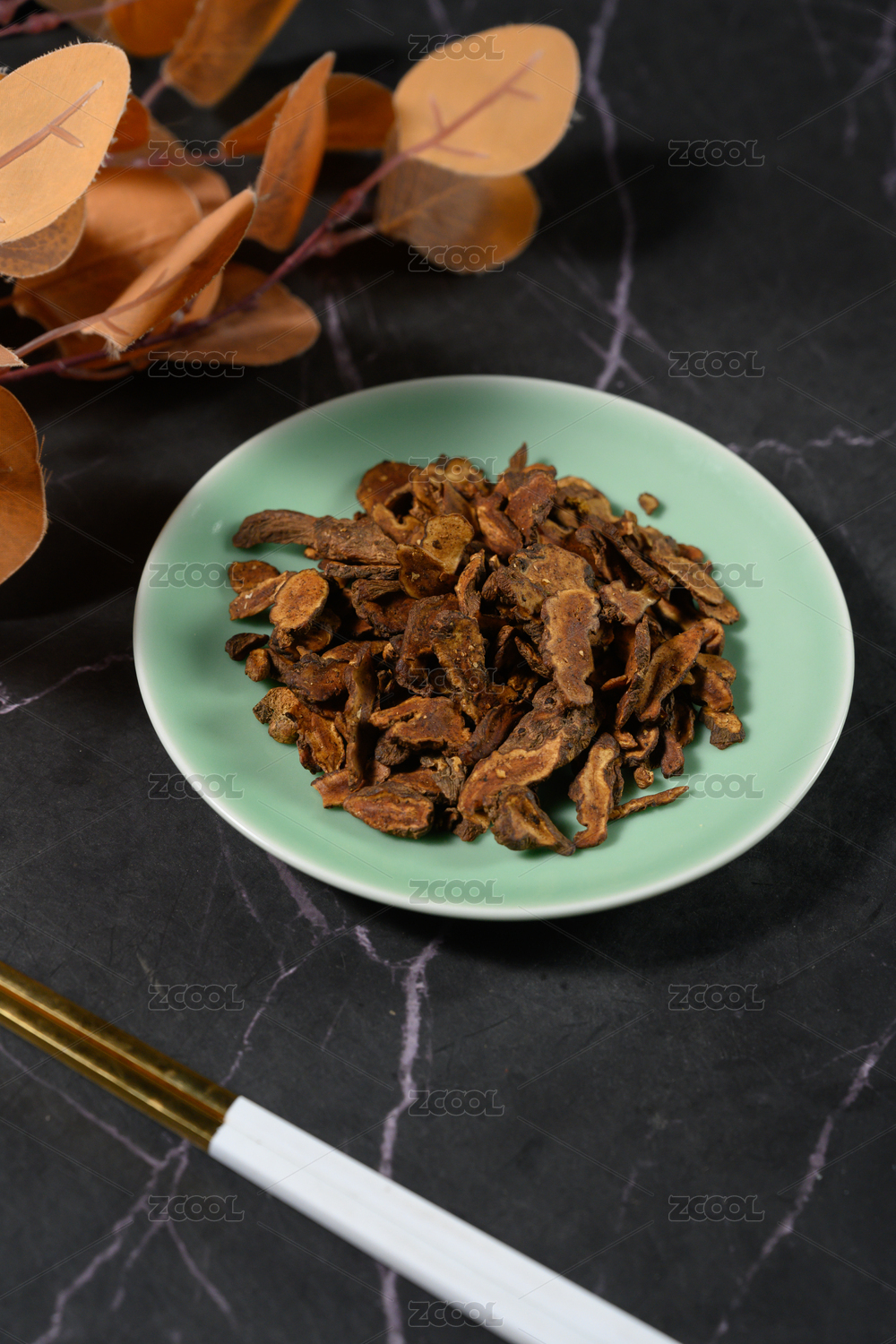 桌面上的盘子里的干三七片