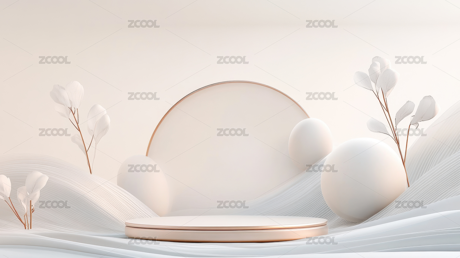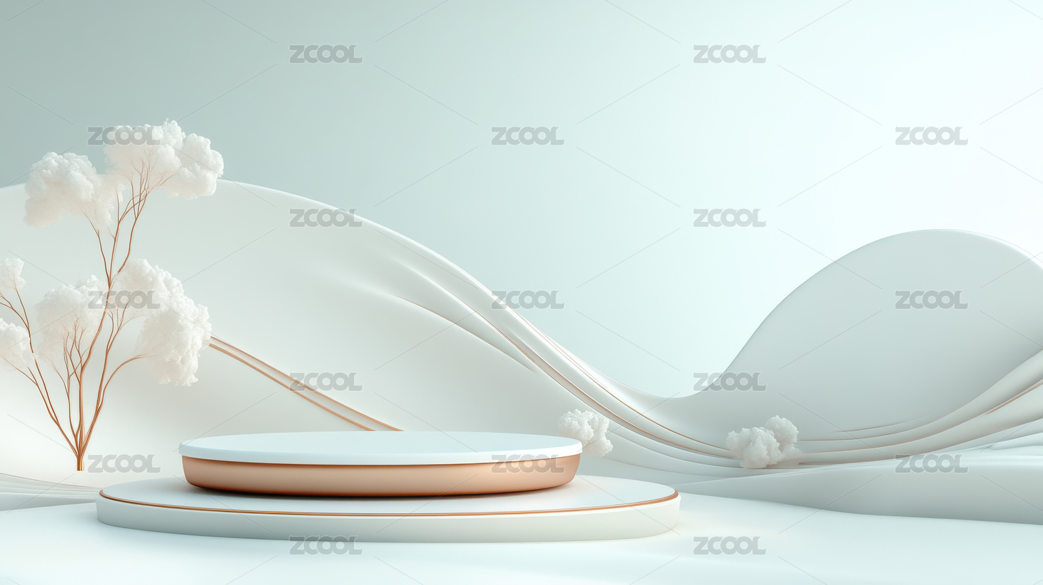 简约白色展示台与花卉背景