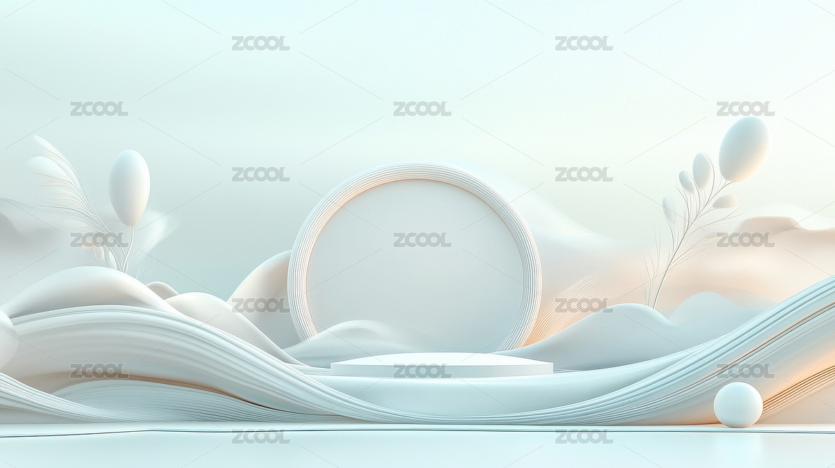 抽象艺术背景中的白色圆形平台