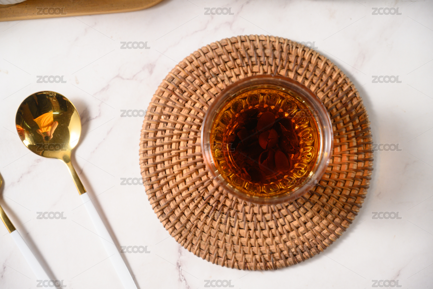 桌面上的杯子里的甘甜可口的厚朴茶