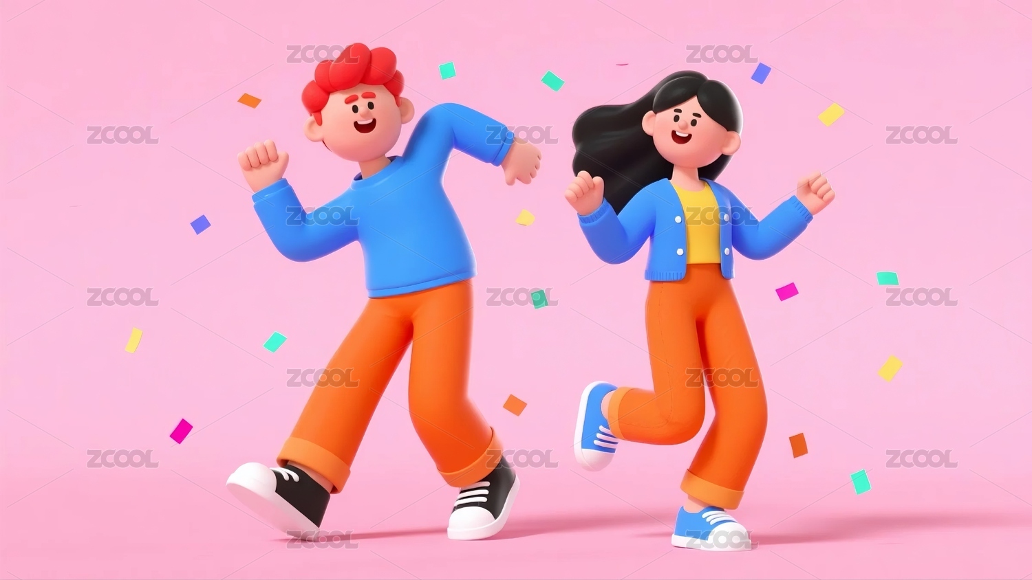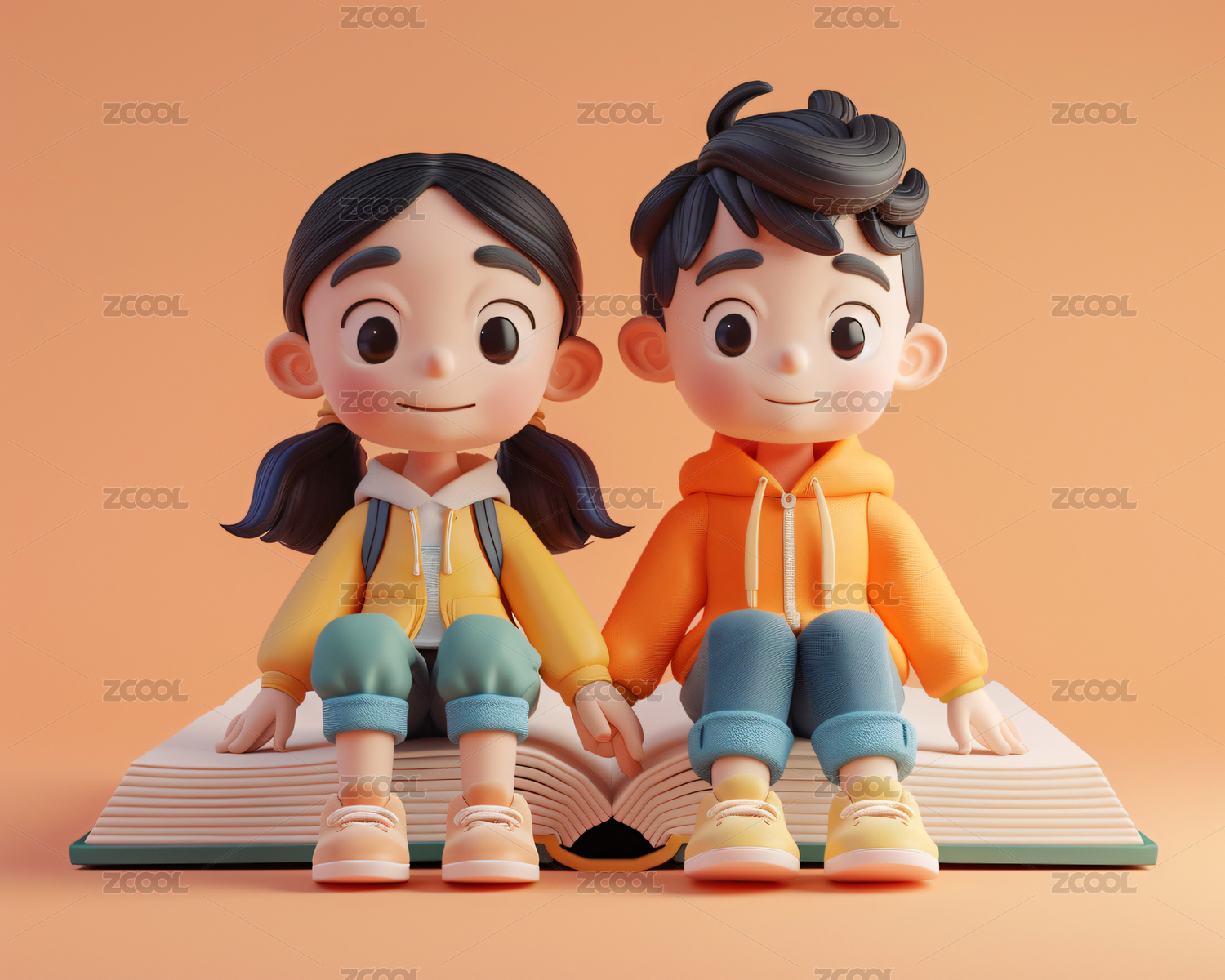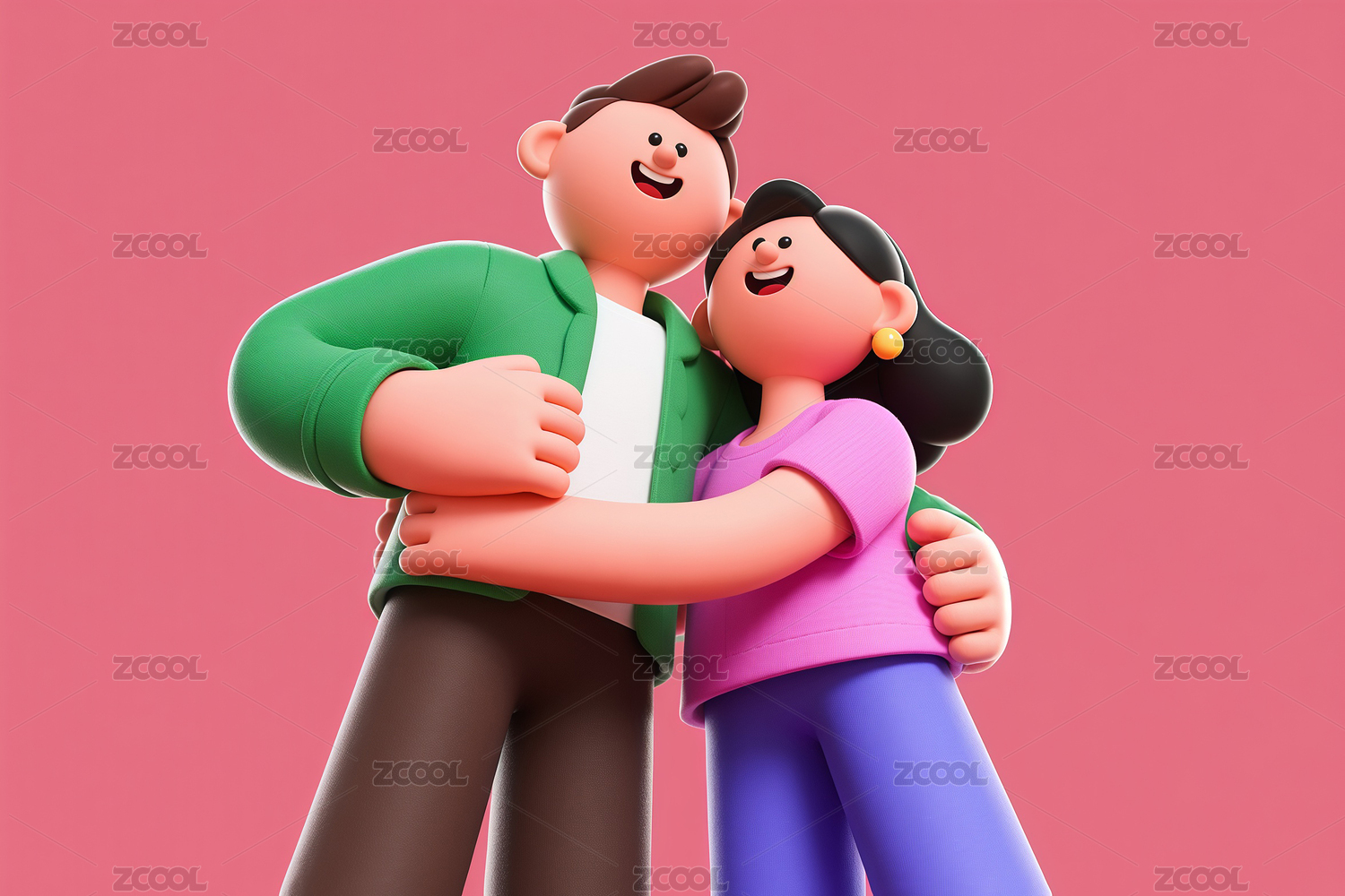 坐沙发上依靠一起的夫妻或情侣3D卡通人物