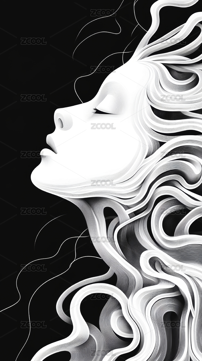 线条,美人,插画,图案,艺术,人物,女人,时尚,背景,黑白