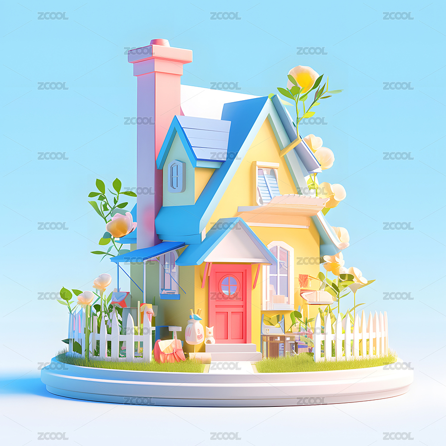 多巴胺,彩色,色彩,鲜艳,艳丽,房屋,房子,公寓,几何,3D