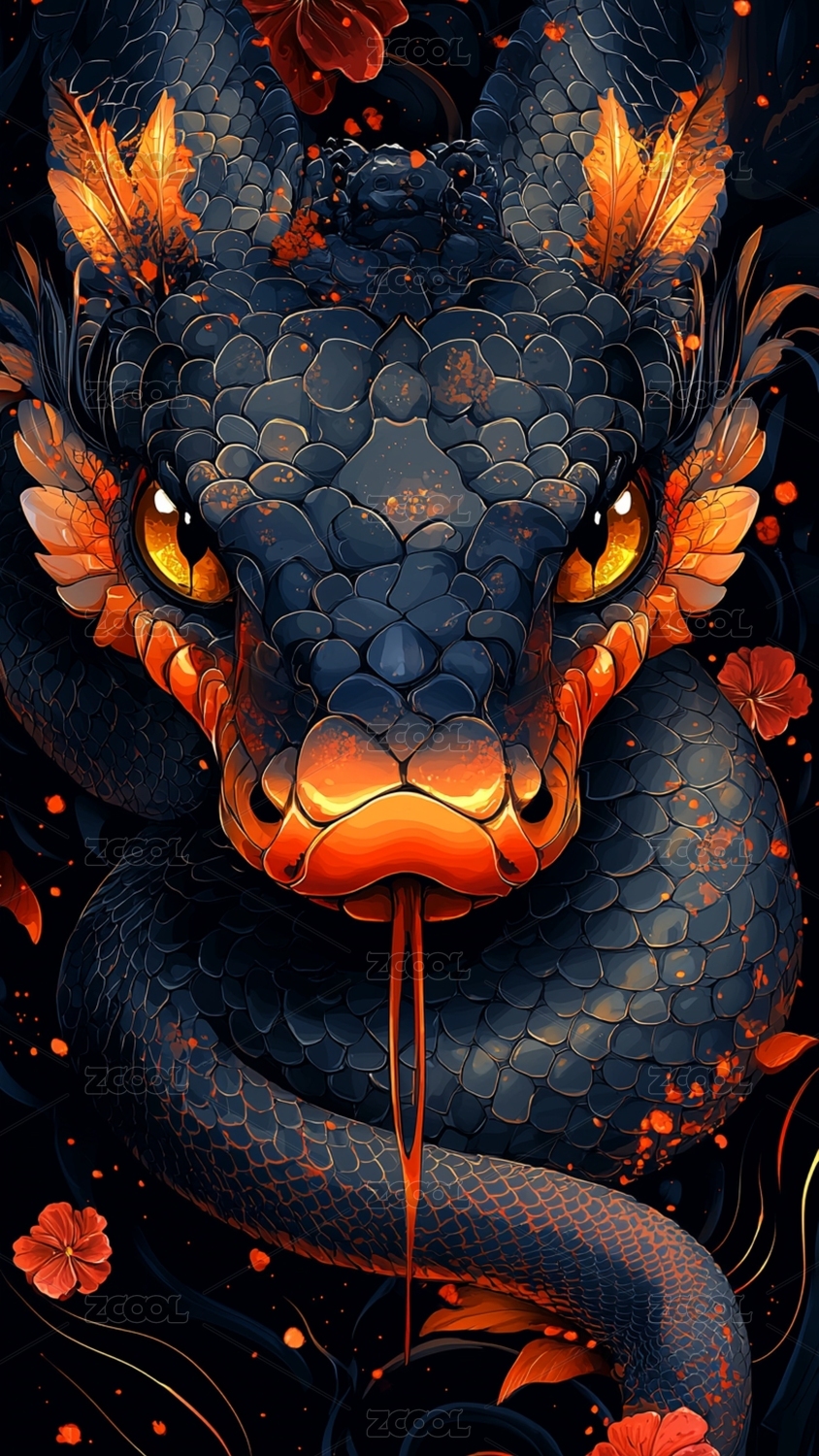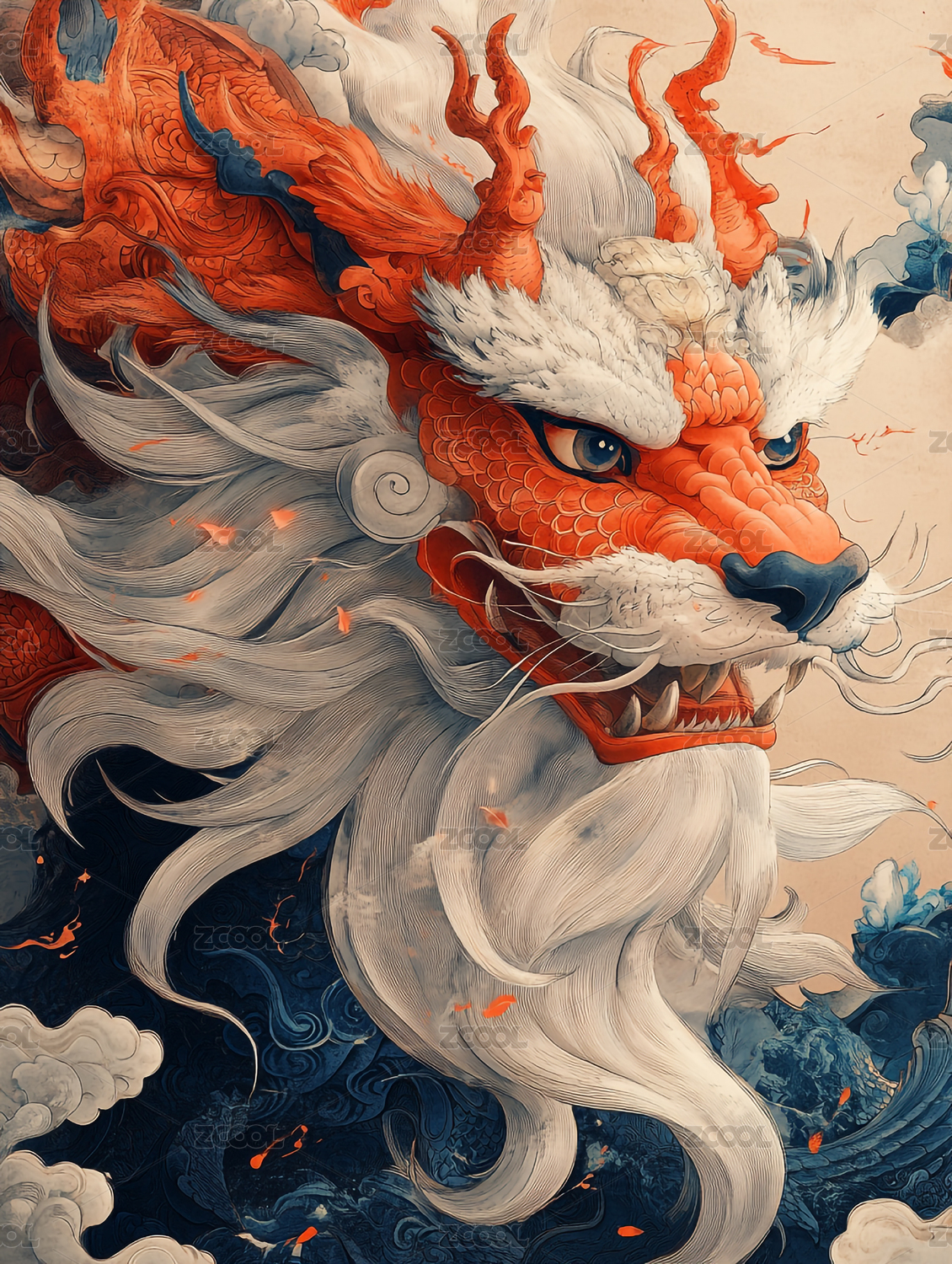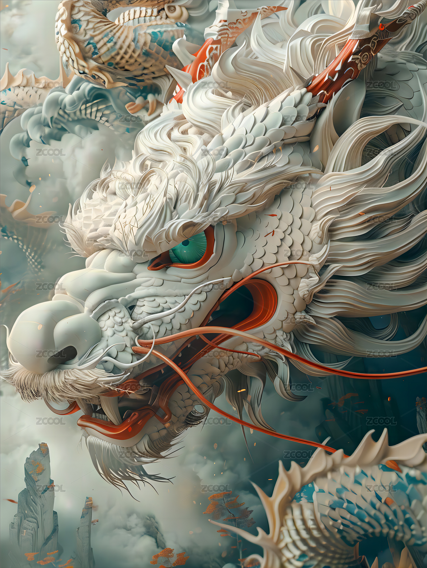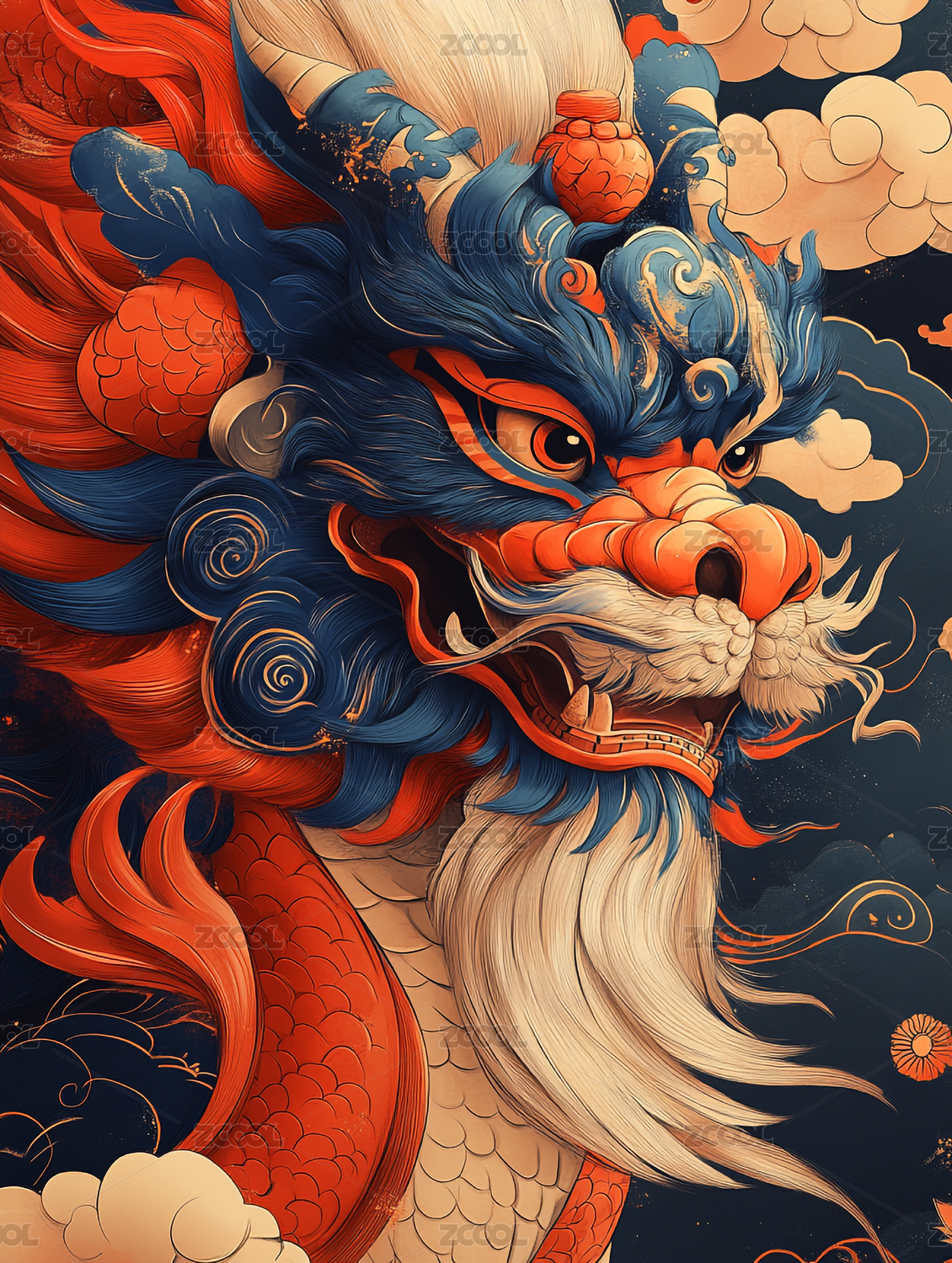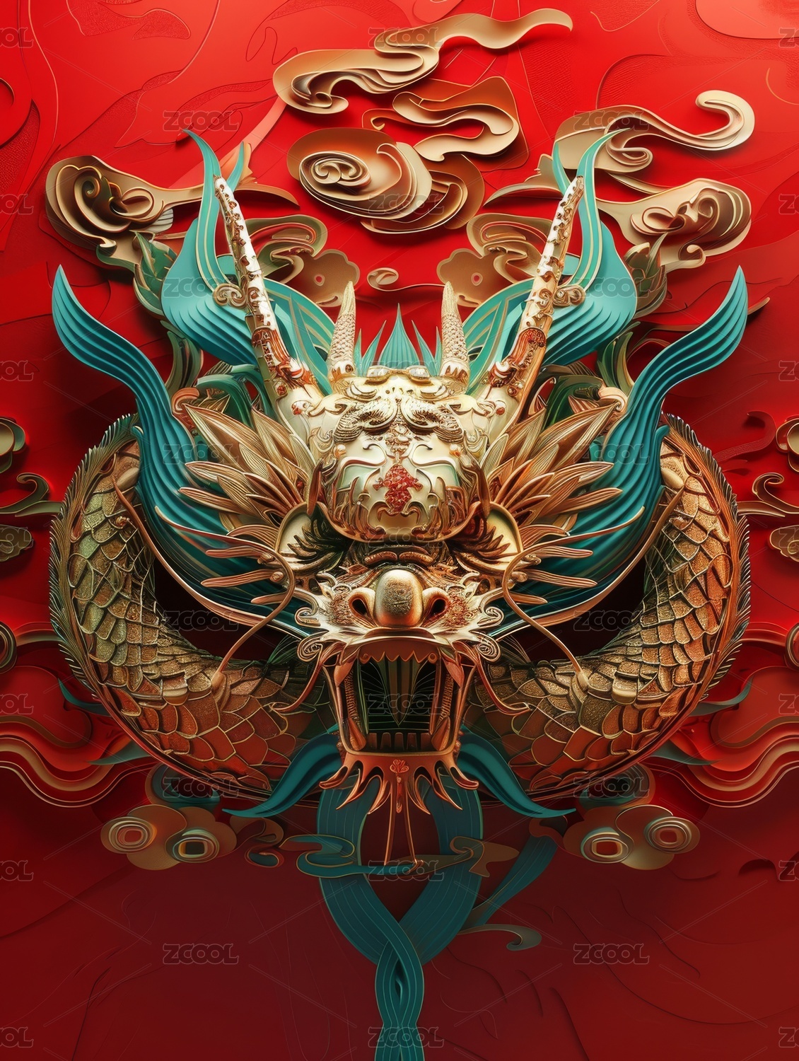 3d立体风格中国年国潮醒狮龙头壁纸插画