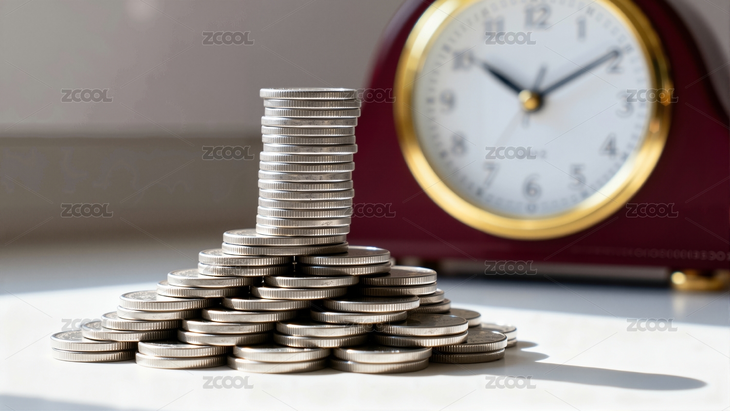 硬币堆叠与钟表静物