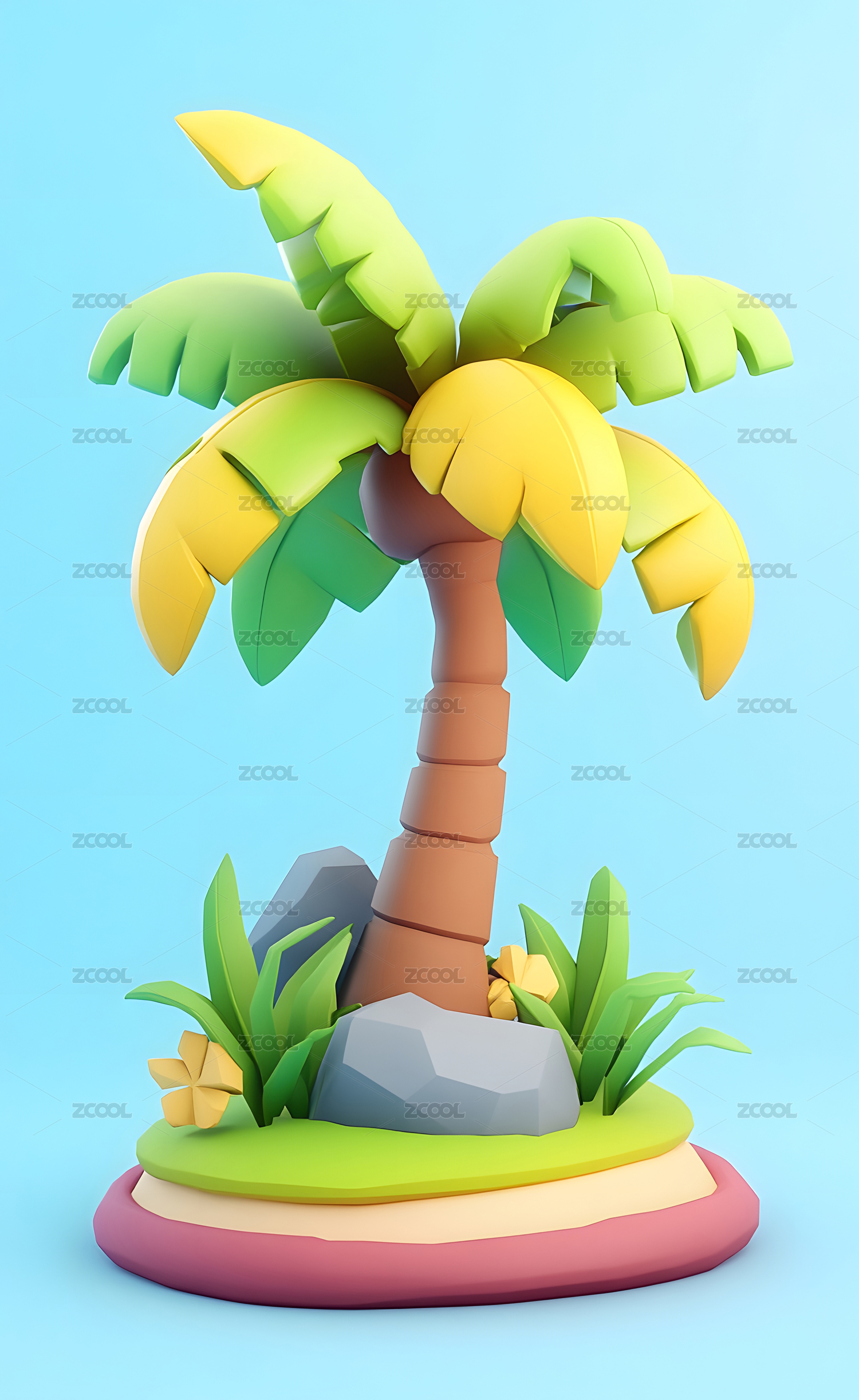 3D渲染的椰子树,夏季热带海岛夏天节气概