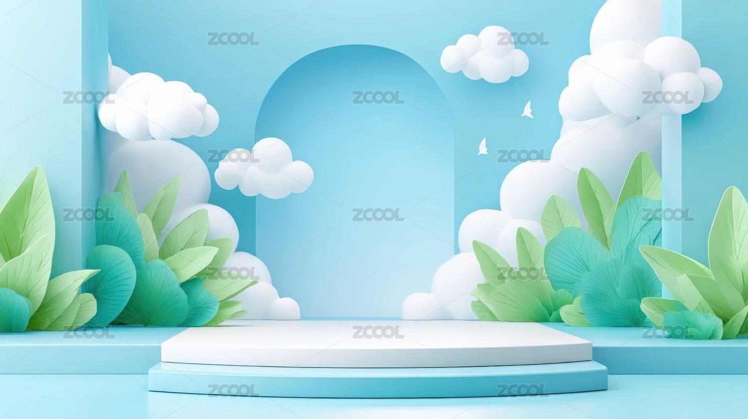 3D,C4D,三维图形,立体,春天,绿色,清新,简约,蓝色,植物