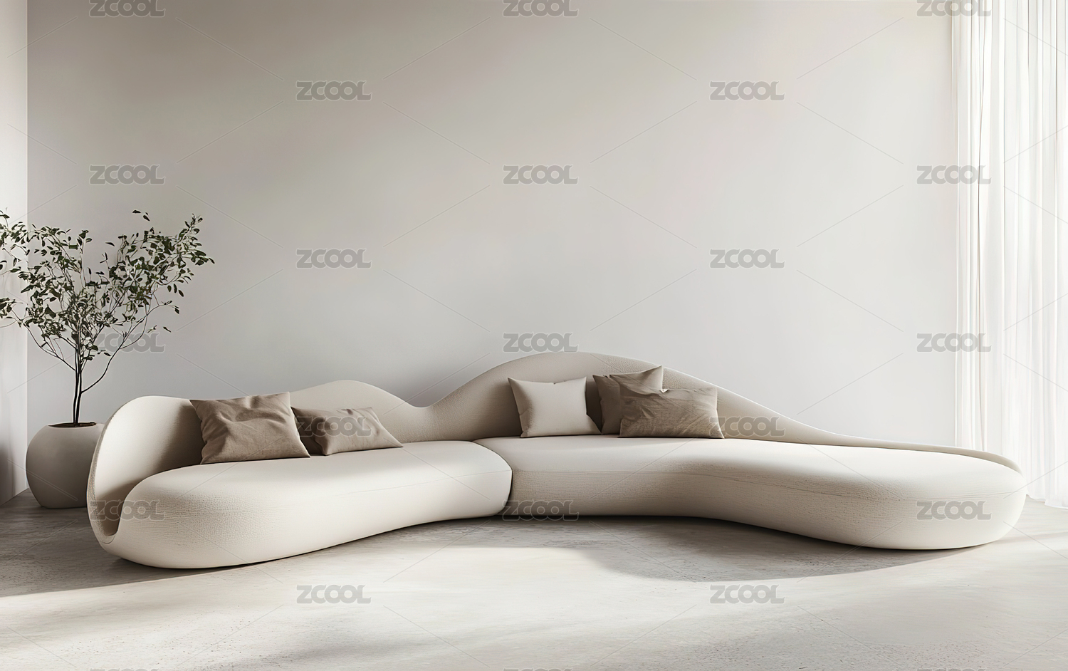 3D室内奶油风客厅沙发三维空间场景