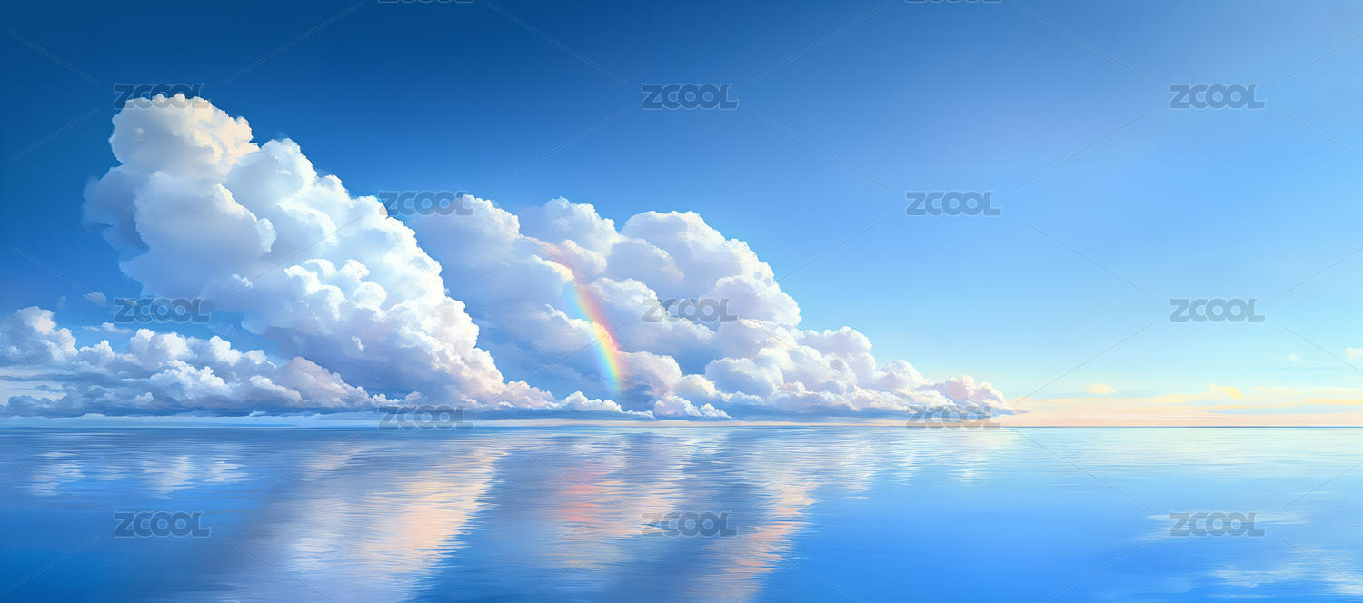 唯美梦幻天空大海清新简约插画