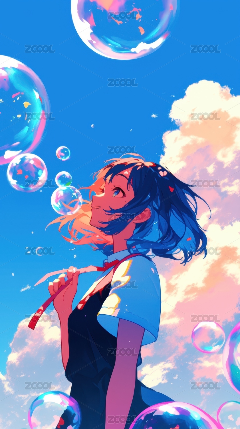 二次元,梦幻,男孩,唯美,壁纸,海报,帅气,泡泡,一个人,人