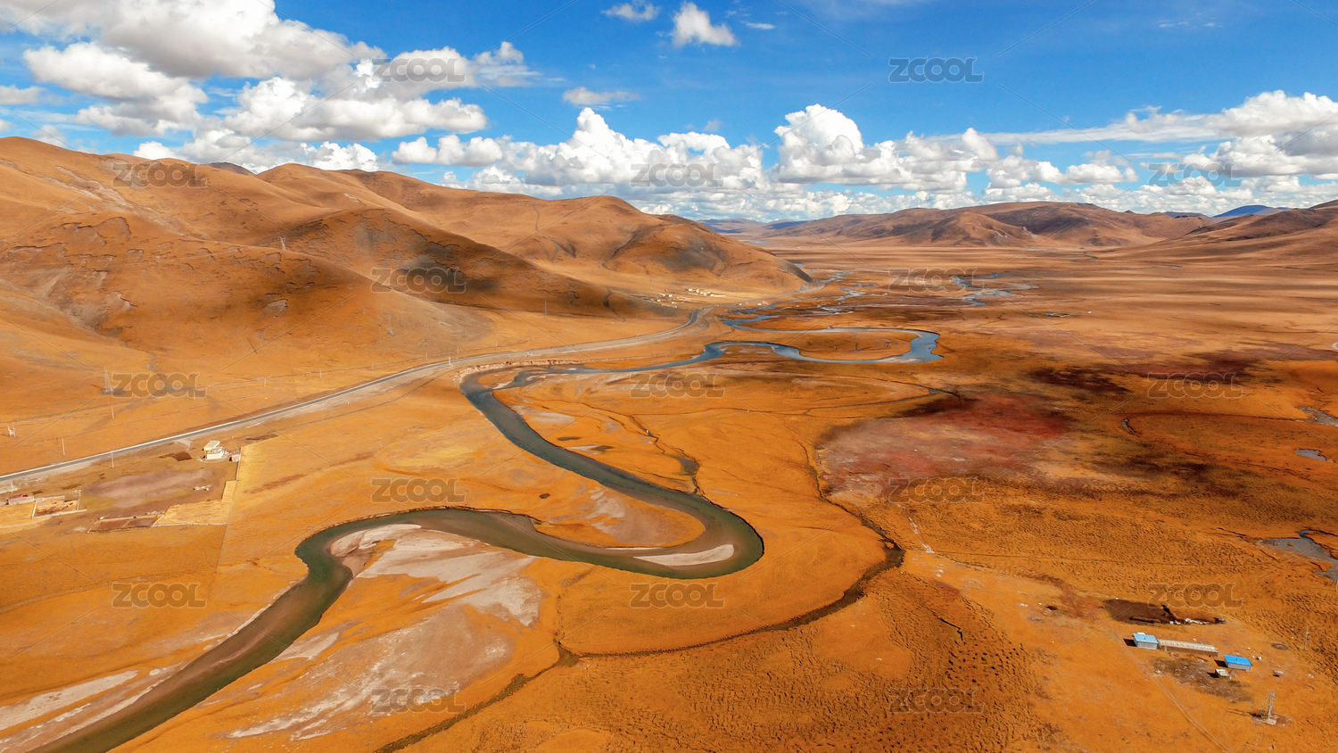 中国西藏新藏线雅鲁藏藏布江草原湿地风光