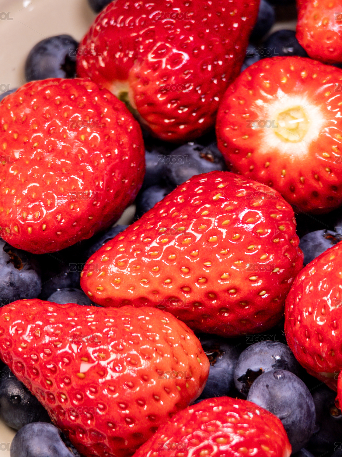 草莓,浆果,水果,红,新鲜,健康,吃,美食,草莓切片,蓝莓