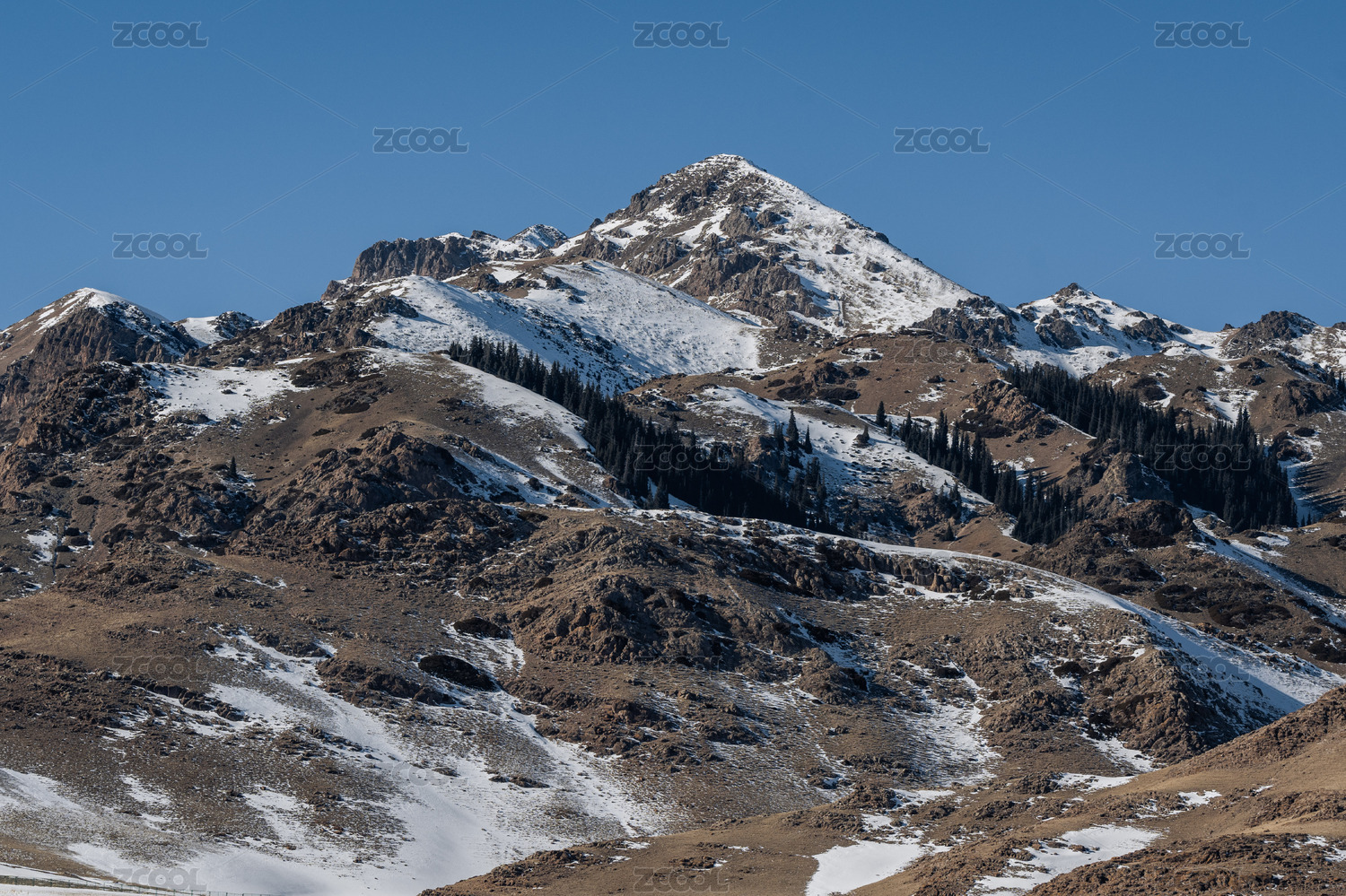 雪山,蓝天,天气晴朗,山峰,山顶,冬季,寒冷,积雪,云,风景