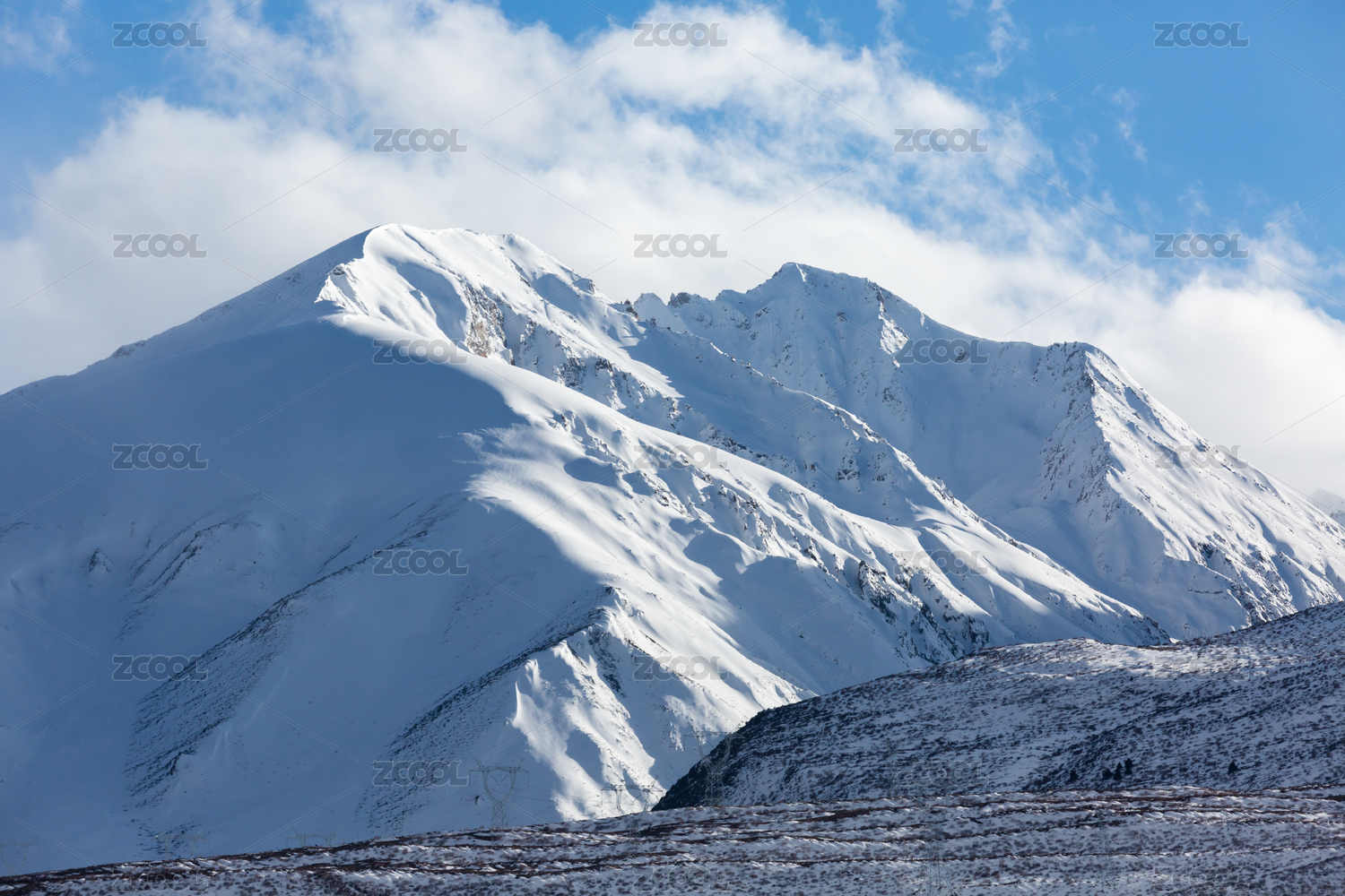 中国新疆天山山脉冬季雪山风光