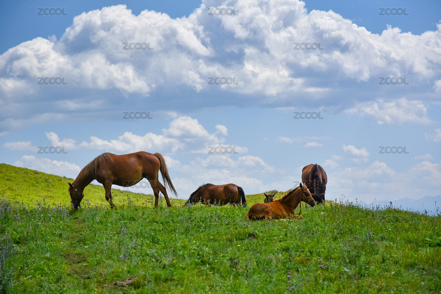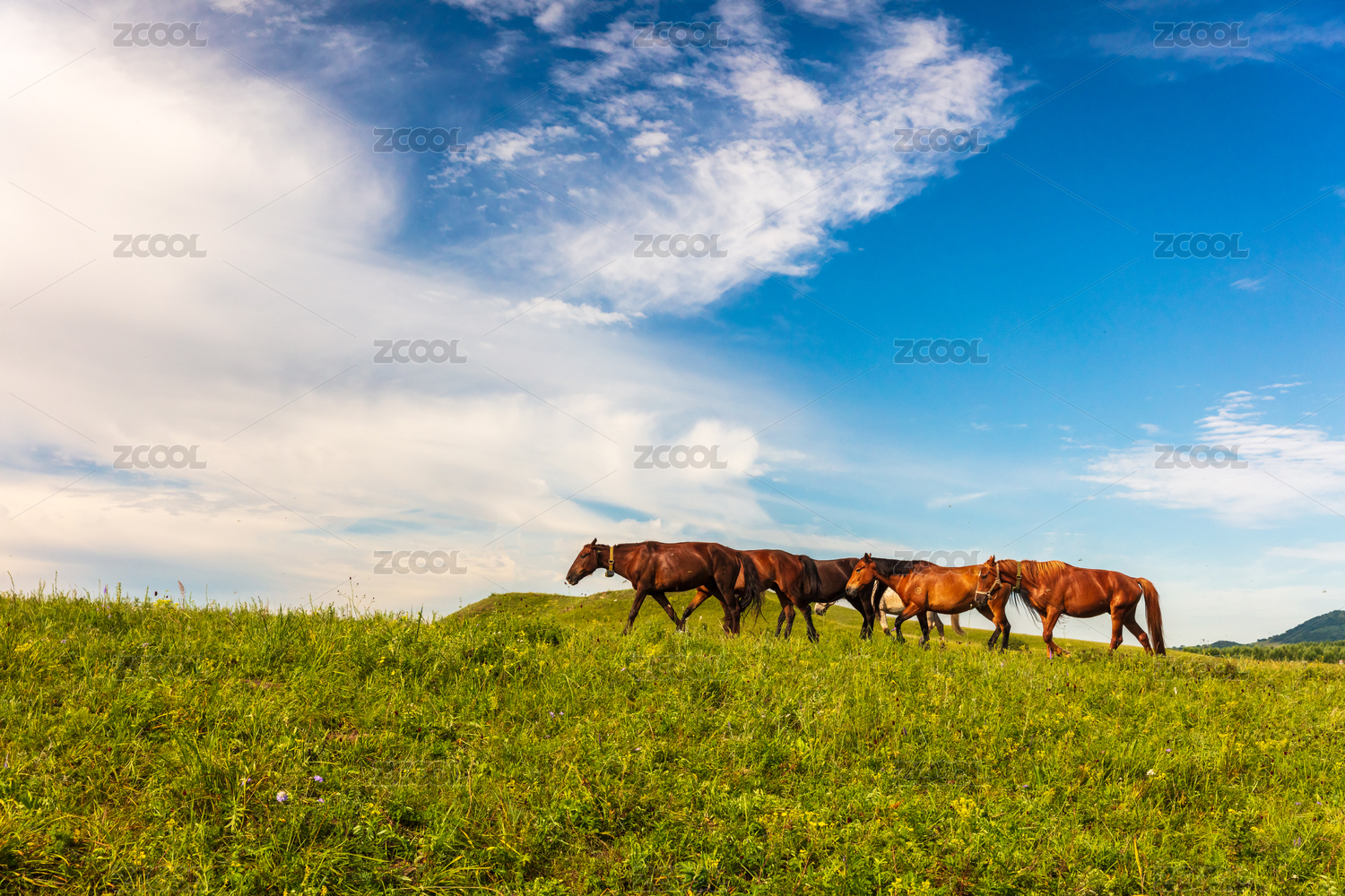 内蒙古赤峰乌兰布统草原景区蓝天白马群骏马