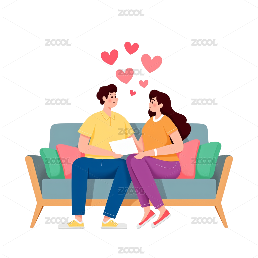 情人节爱慕的情侣, 矢量扁平人物场景创意概念插画