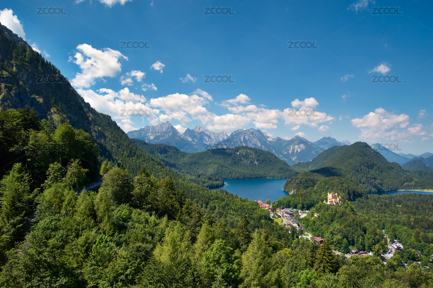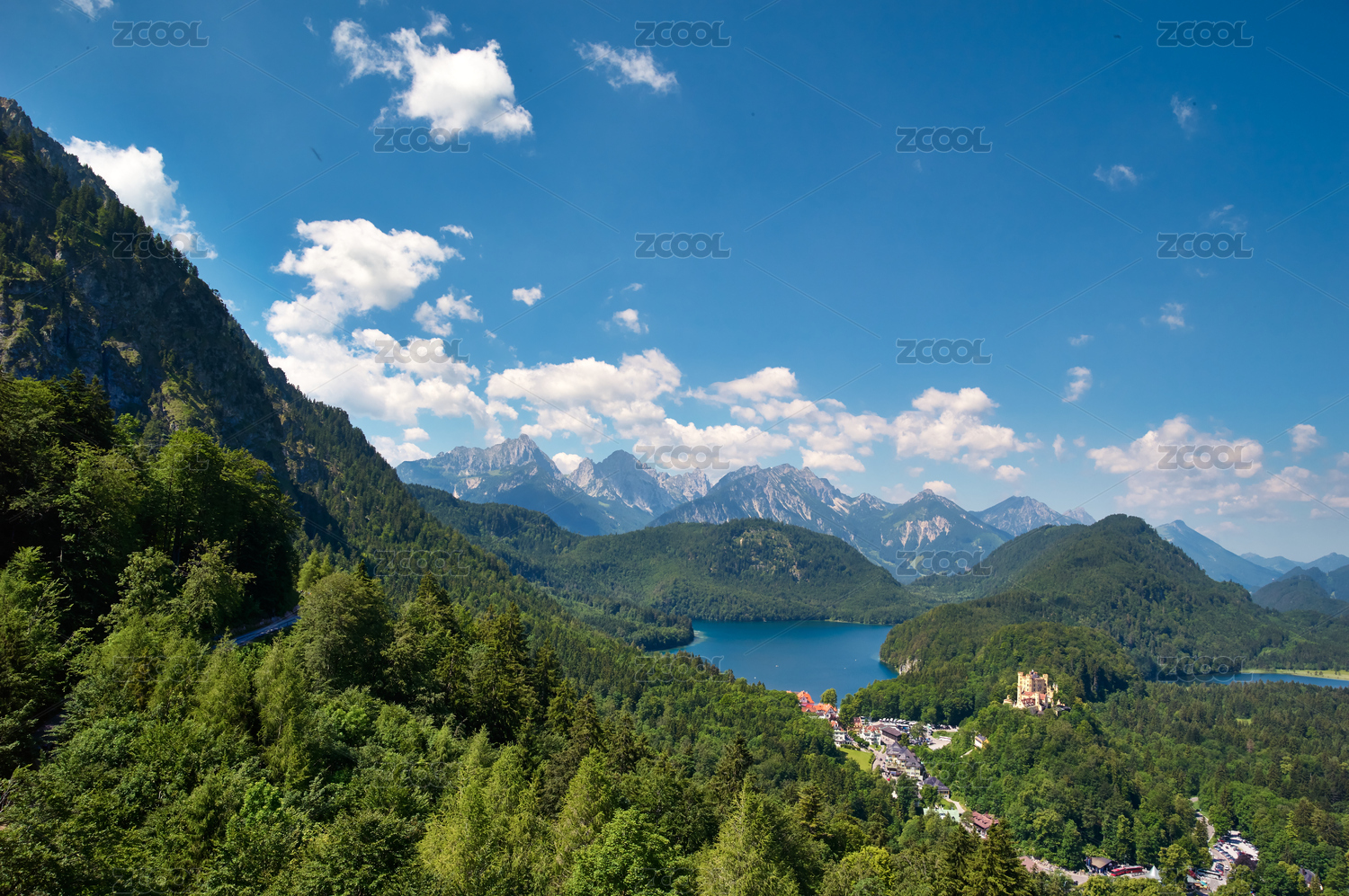 群山环抱中的德国巴伐利亚州高天鹅堡