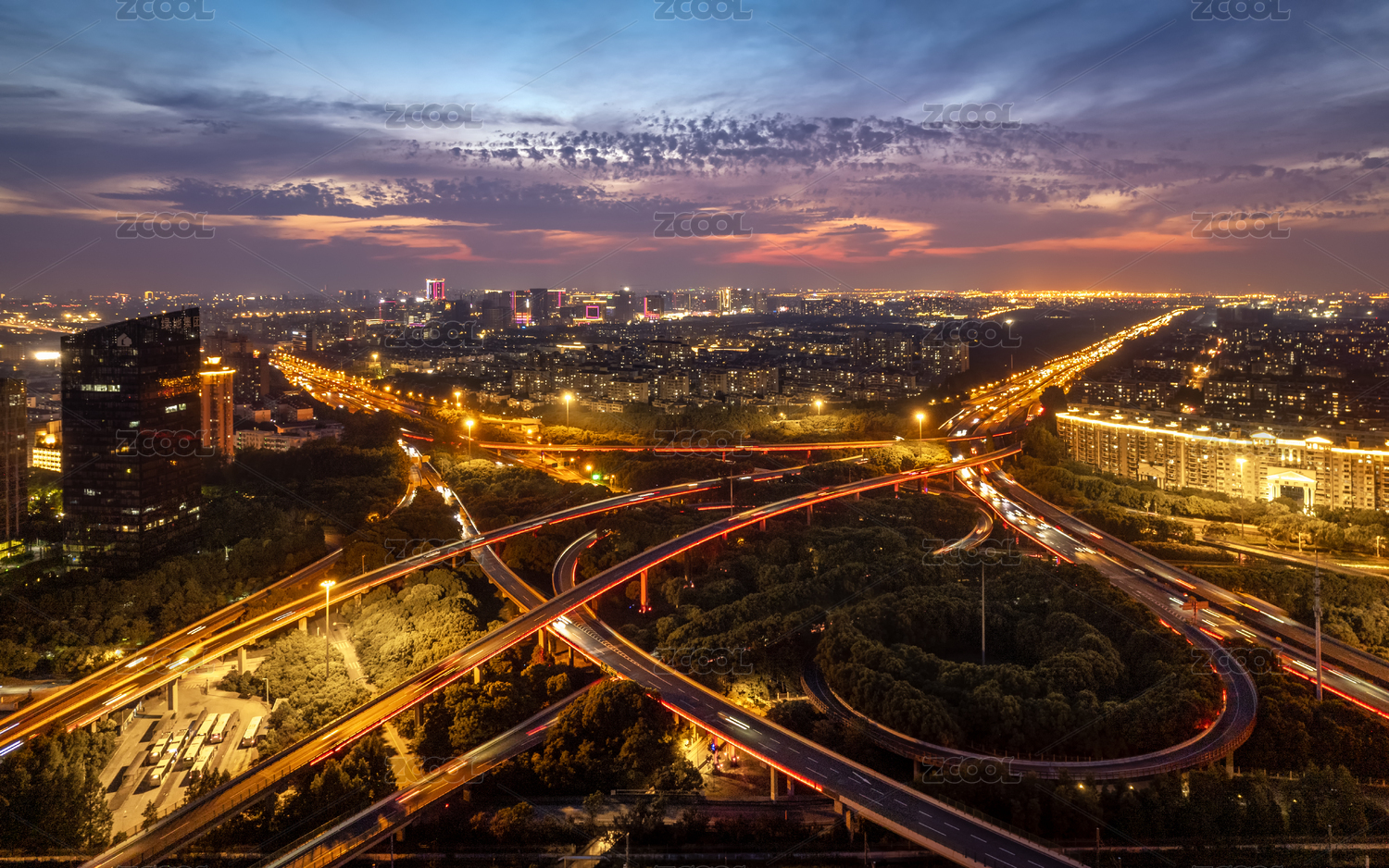 中国四川省成都市二环路营门口立交桥城市风光夜景