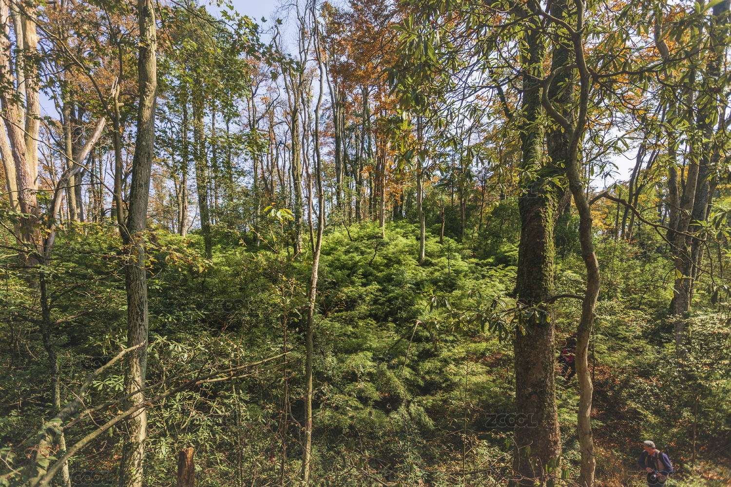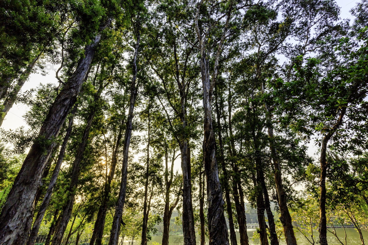 秋天夕阳下的北京颐和园公园的满树黄叶
