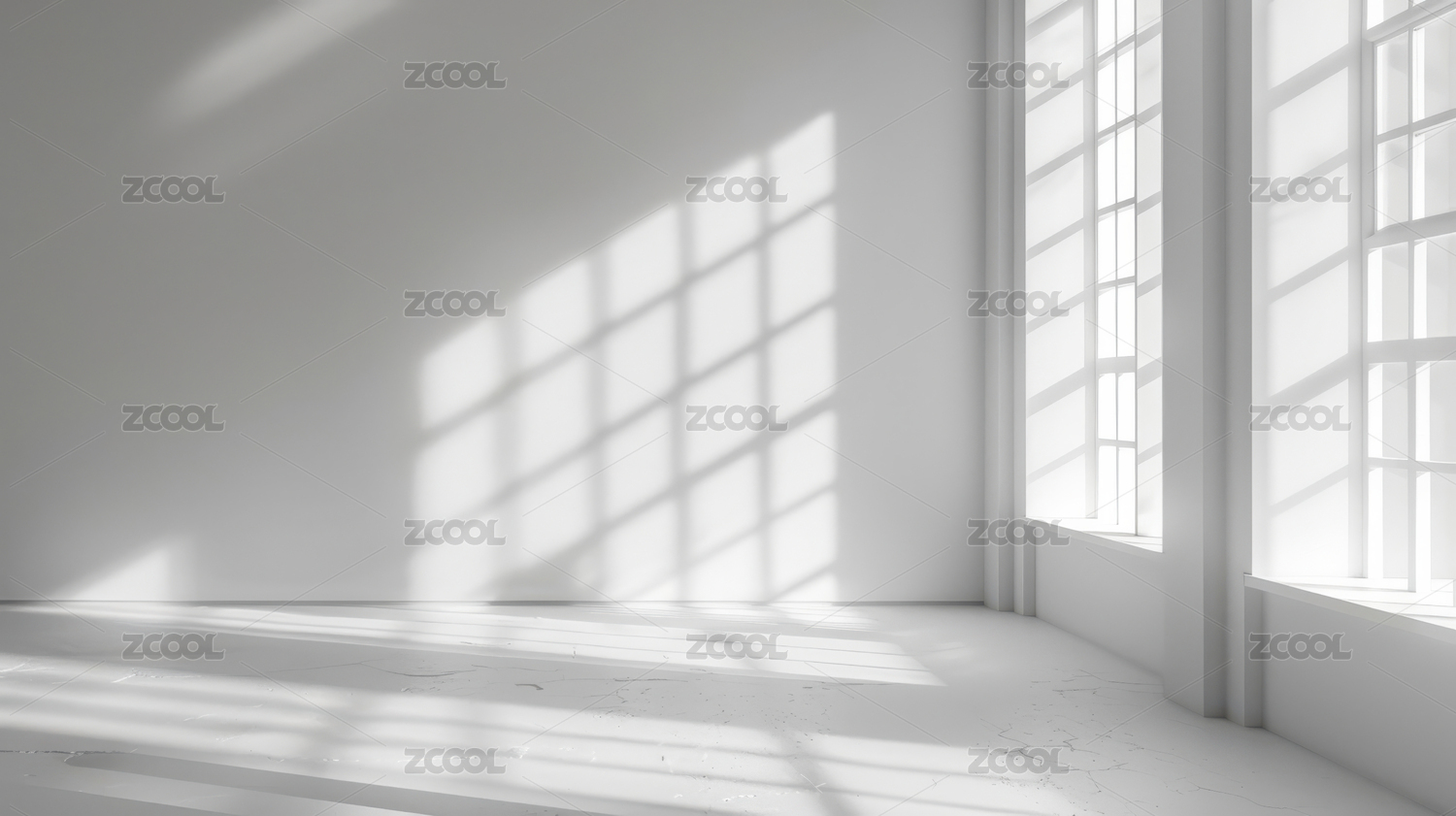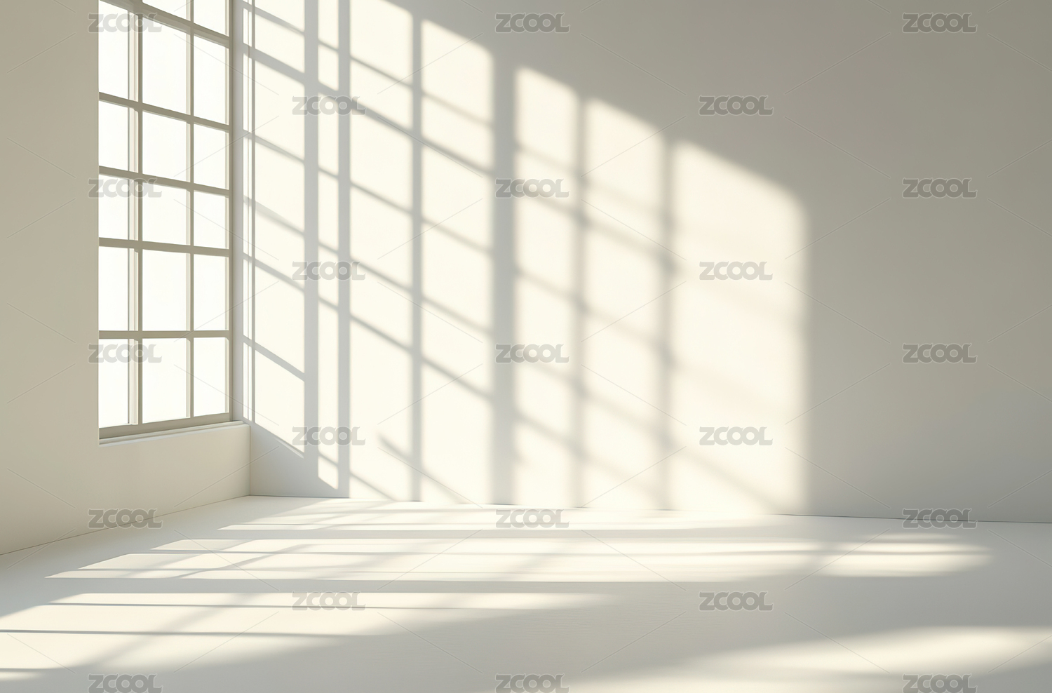 白色粗糙墙壁上自然光线透过窗户照射进来的