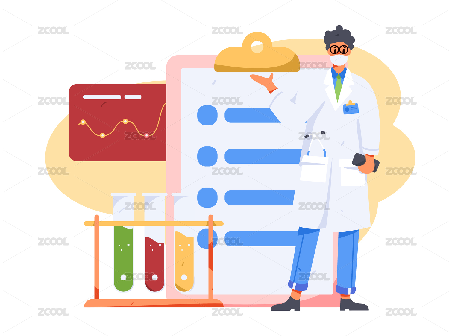 医生智能跟踪整理患者档案病例医疗矢量插画