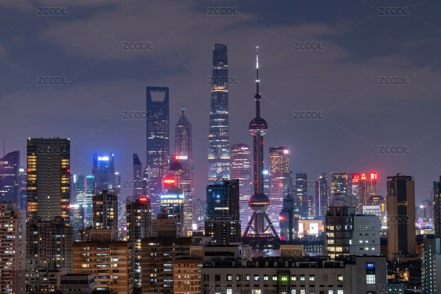 中国上海北外滩浦东陆家嘴城市建筑风光夜景
