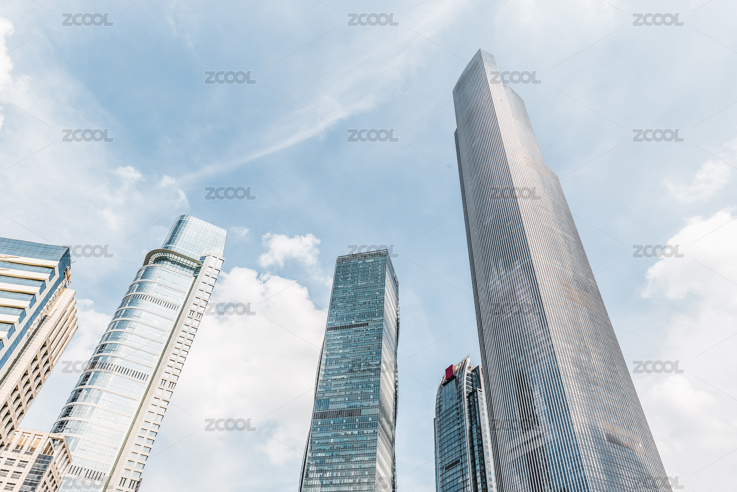 晴天的广州市中心天河区金融中心摩天大厦建筑群