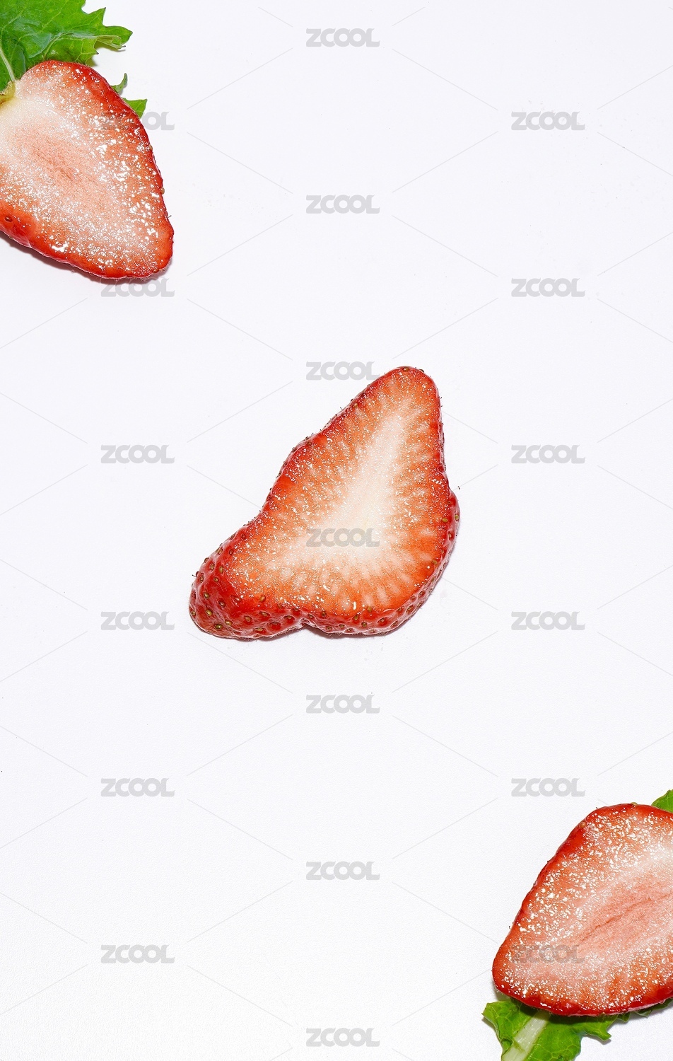 白色背景上一颗切开的草莓