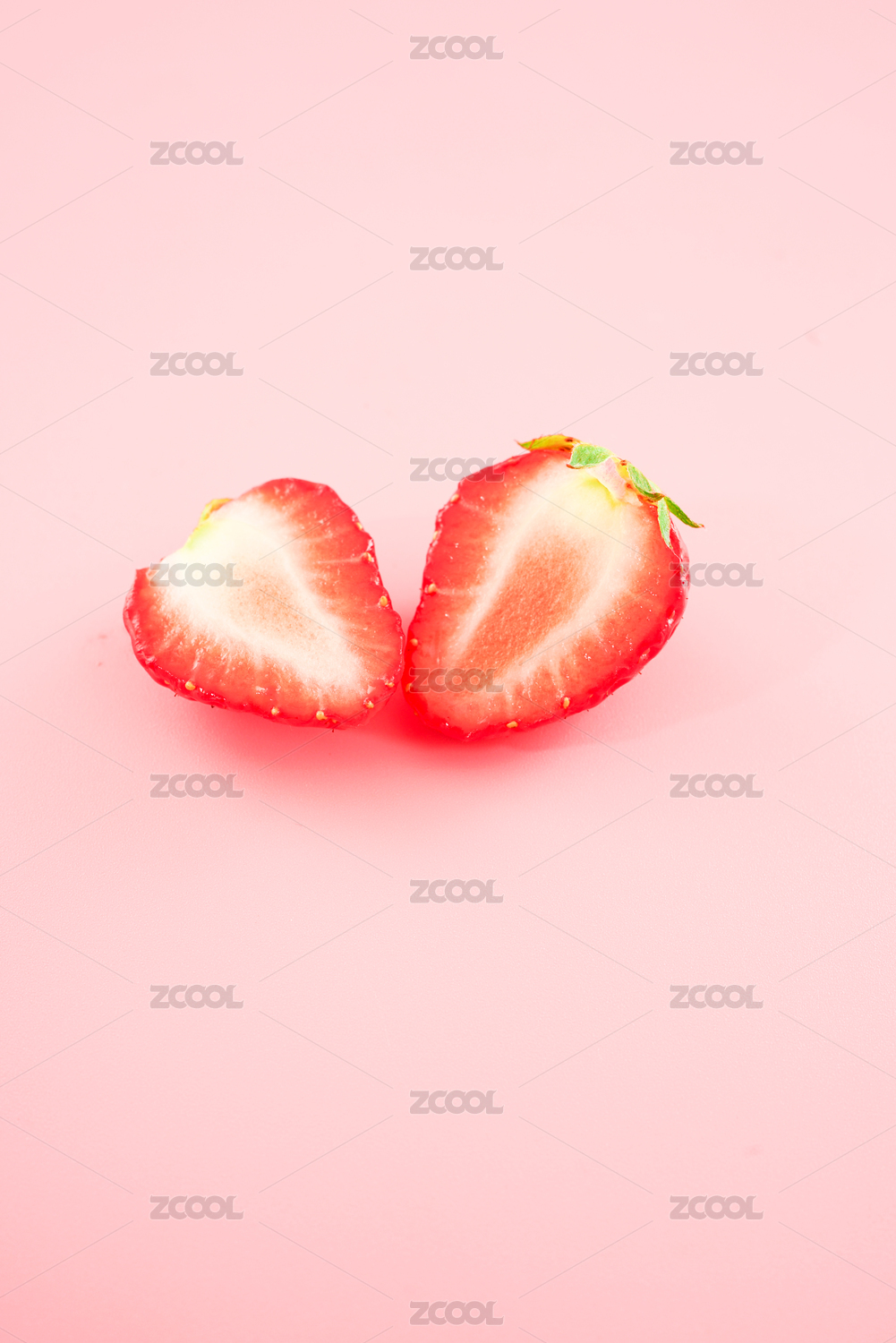 红色切开的草莓和粉色背景