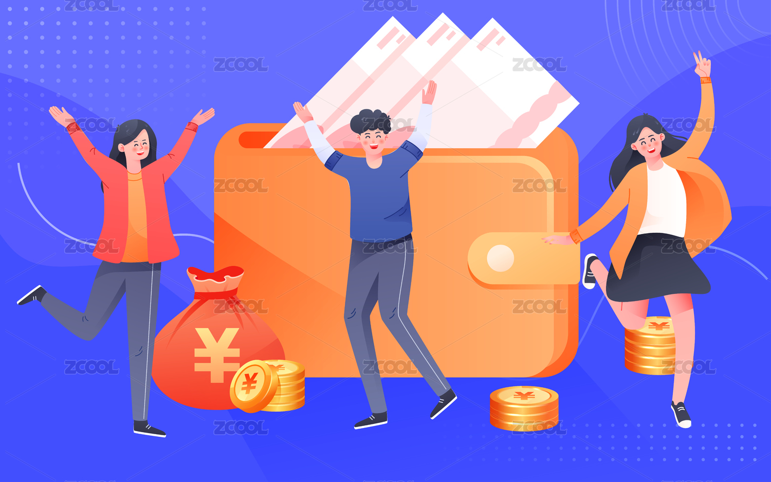 人物福袋互联网钱包金融收益理财矢量插画