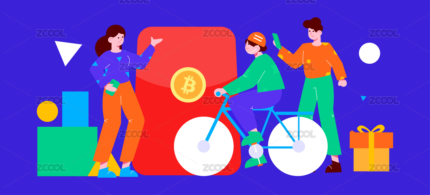 邀请好友得红包,比特币,代币启动页互联网商业矢量扁平人物插画