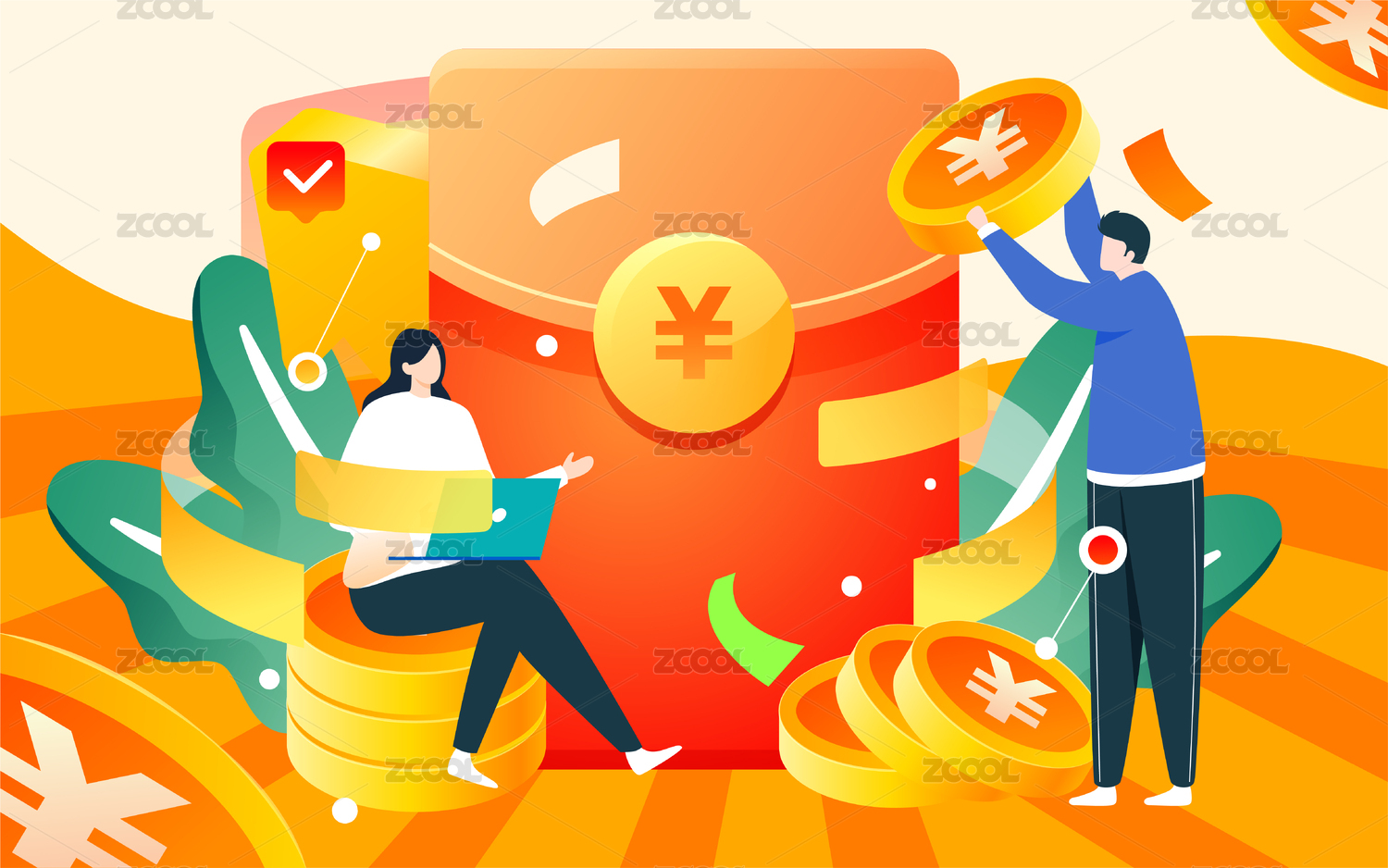 卡通金融理财商务节日活动红包矢量插画素材