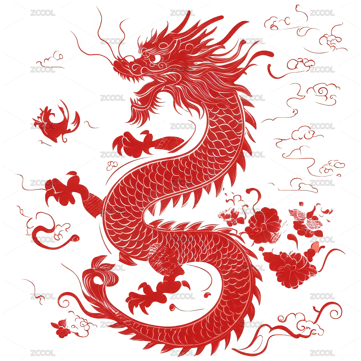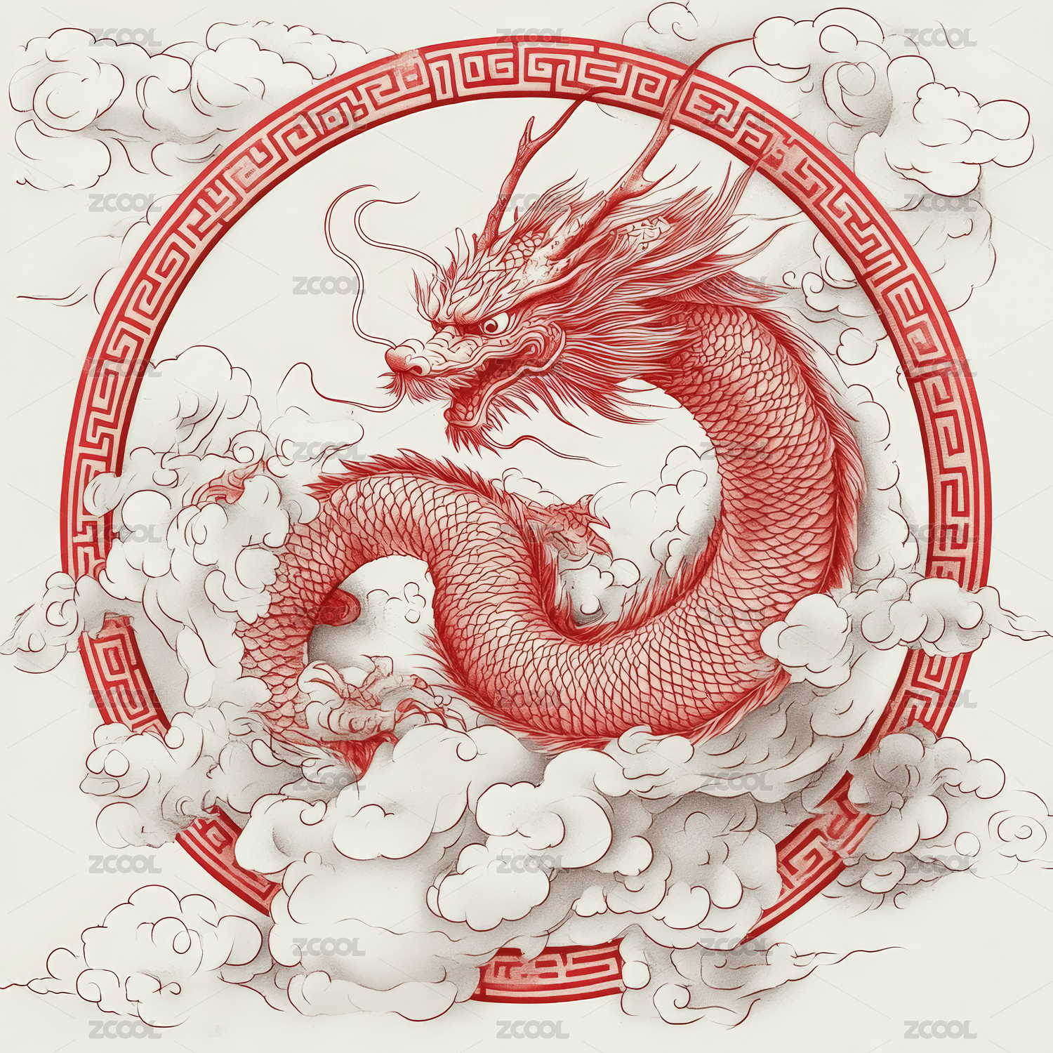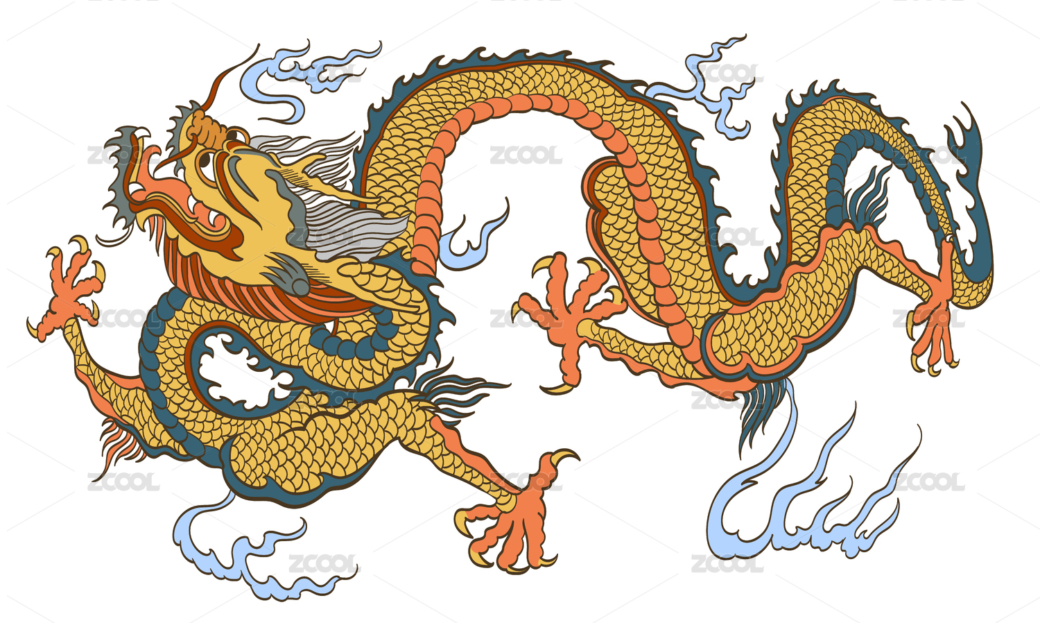中国风,国潮,龙,云,飞翔,传统,图案,插画,太阳,神兽