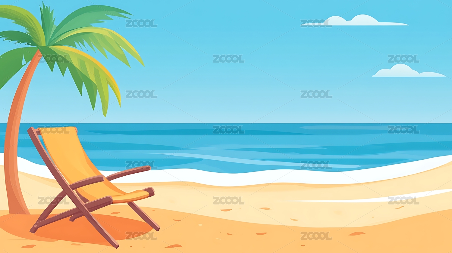 卡通风景夏季出游夏天海边度假旅游矢量插画