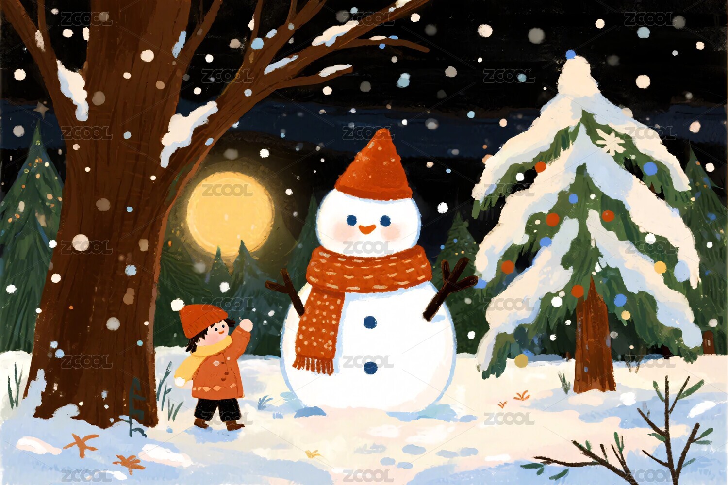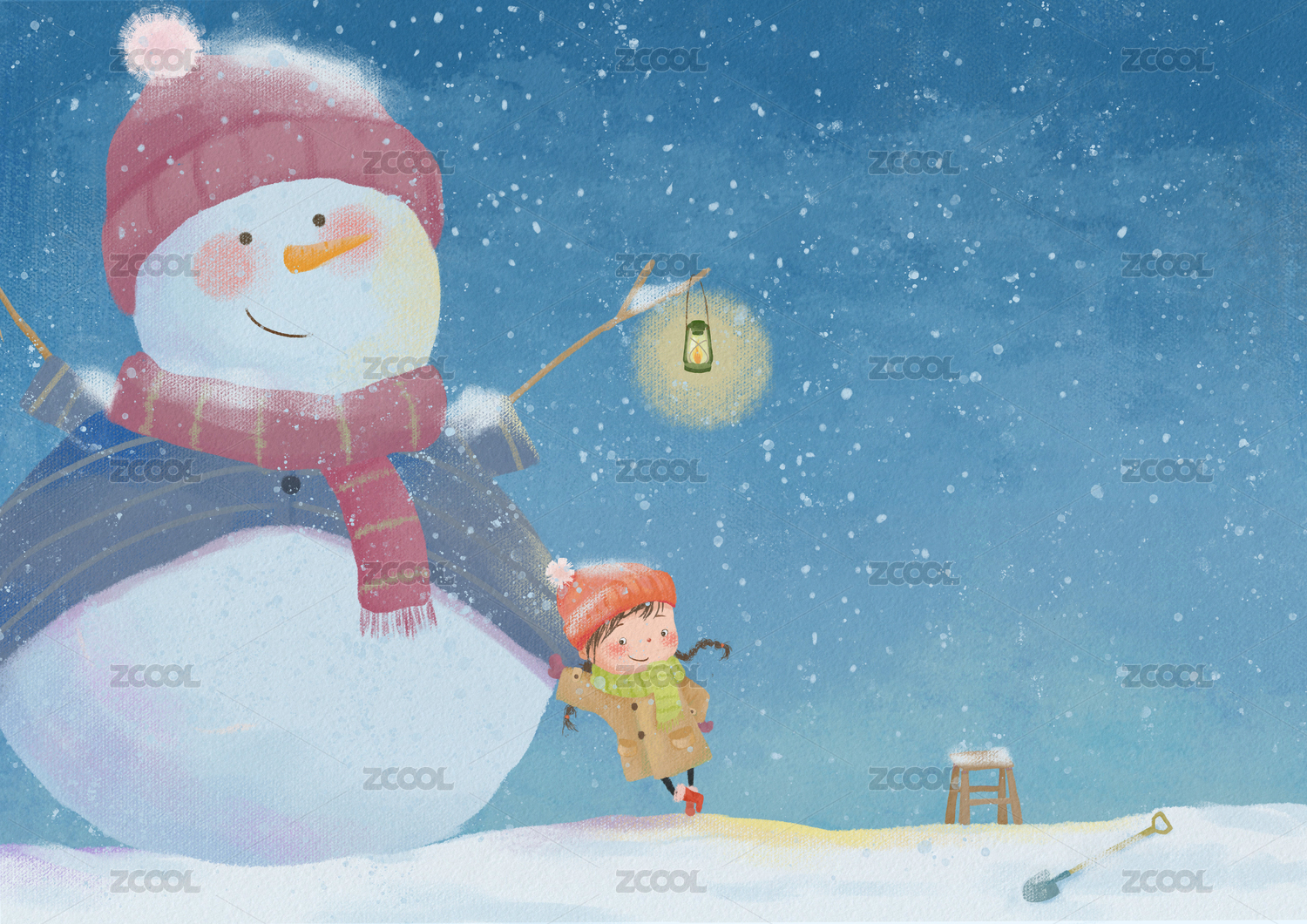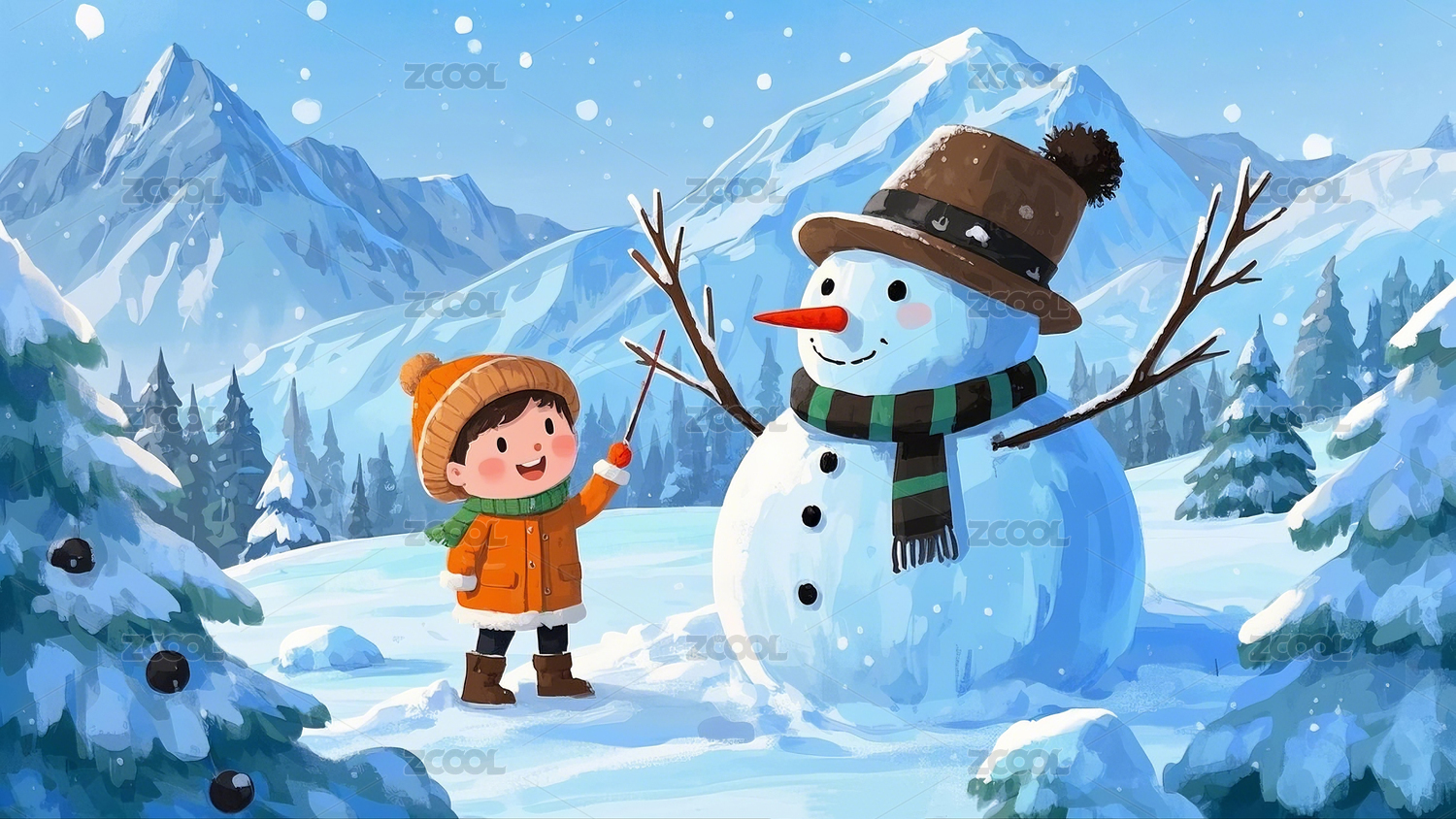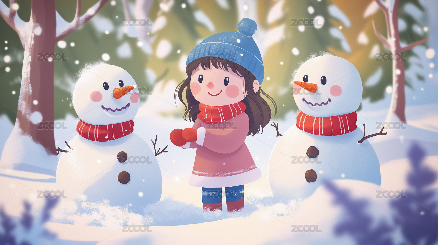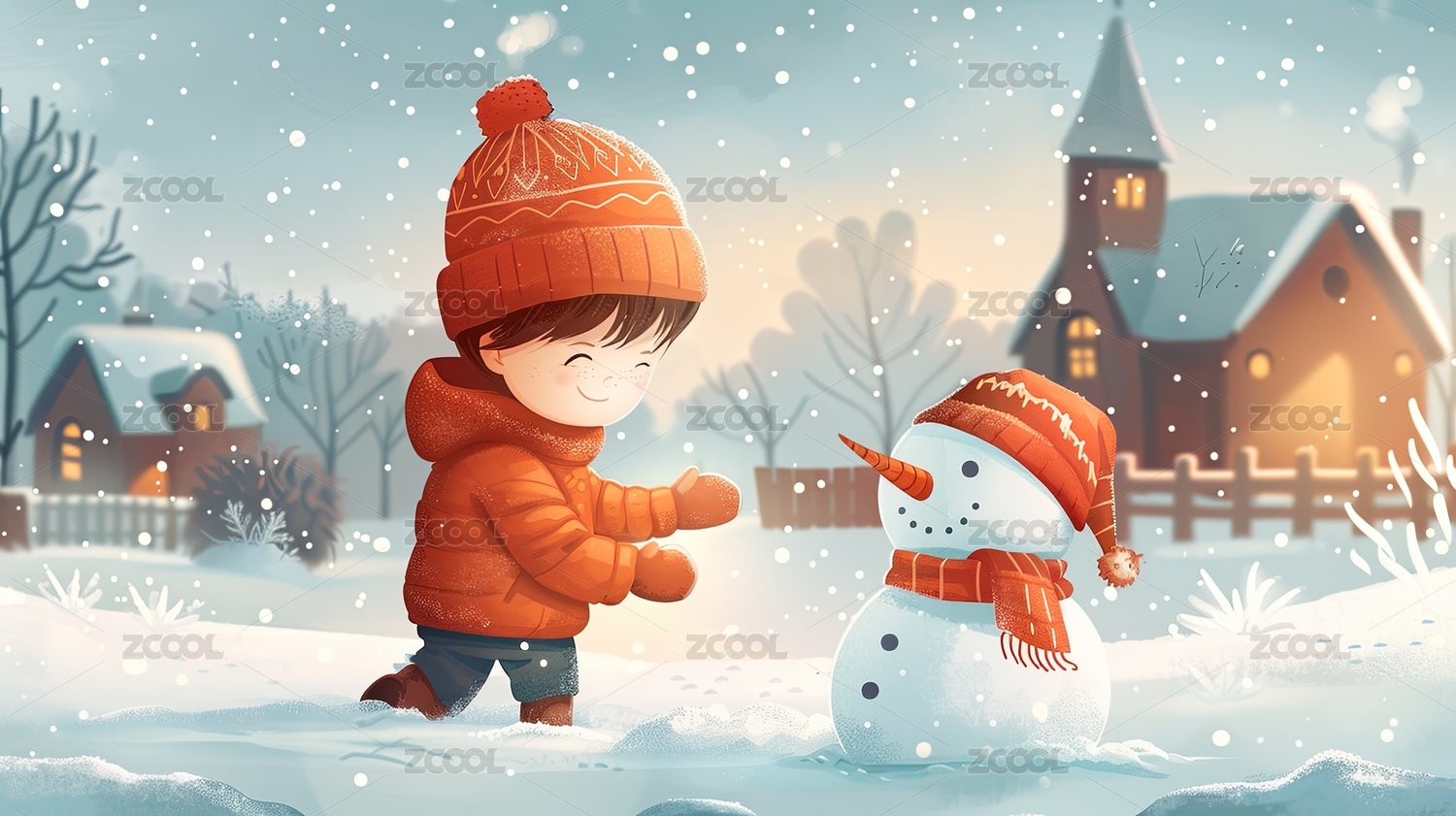 冬天小孩在户外堆雪人,立冬大雪冬至节气
