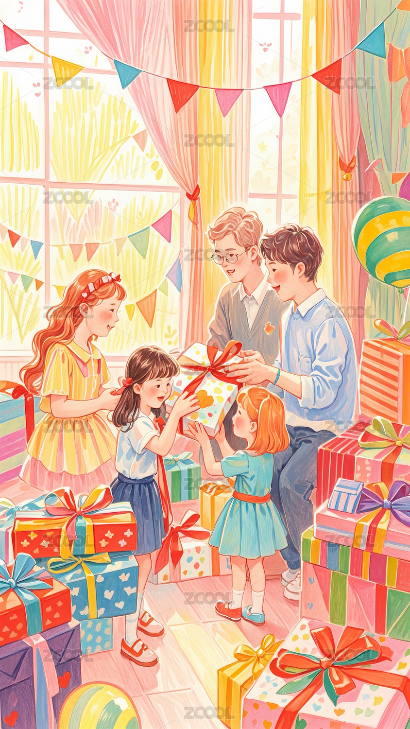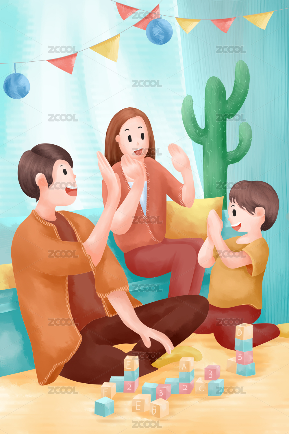 爸爸,妈妈,儿子,生日,儿童插画,HEYYTDK2021,温馨,礼物,蛋糕,气球