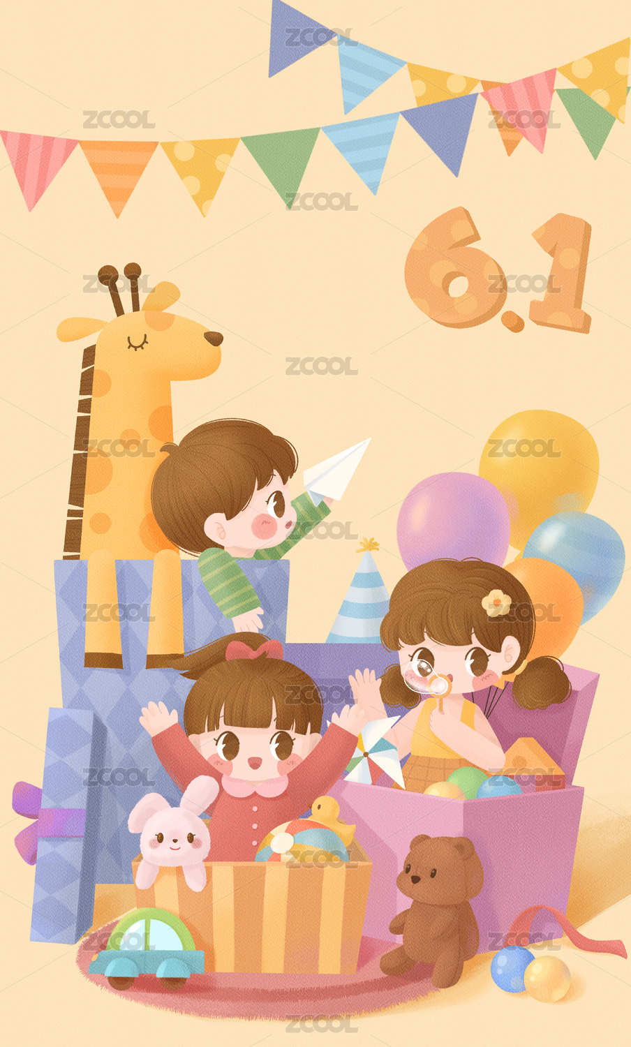 儿童节六一小朋友小孩子礼物插画玩耍梦想
