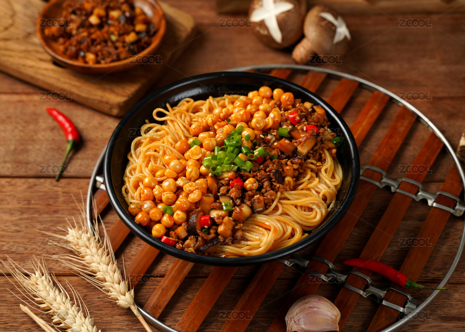 一碗武汉特色小吃热干面摆放在木桌面上特写