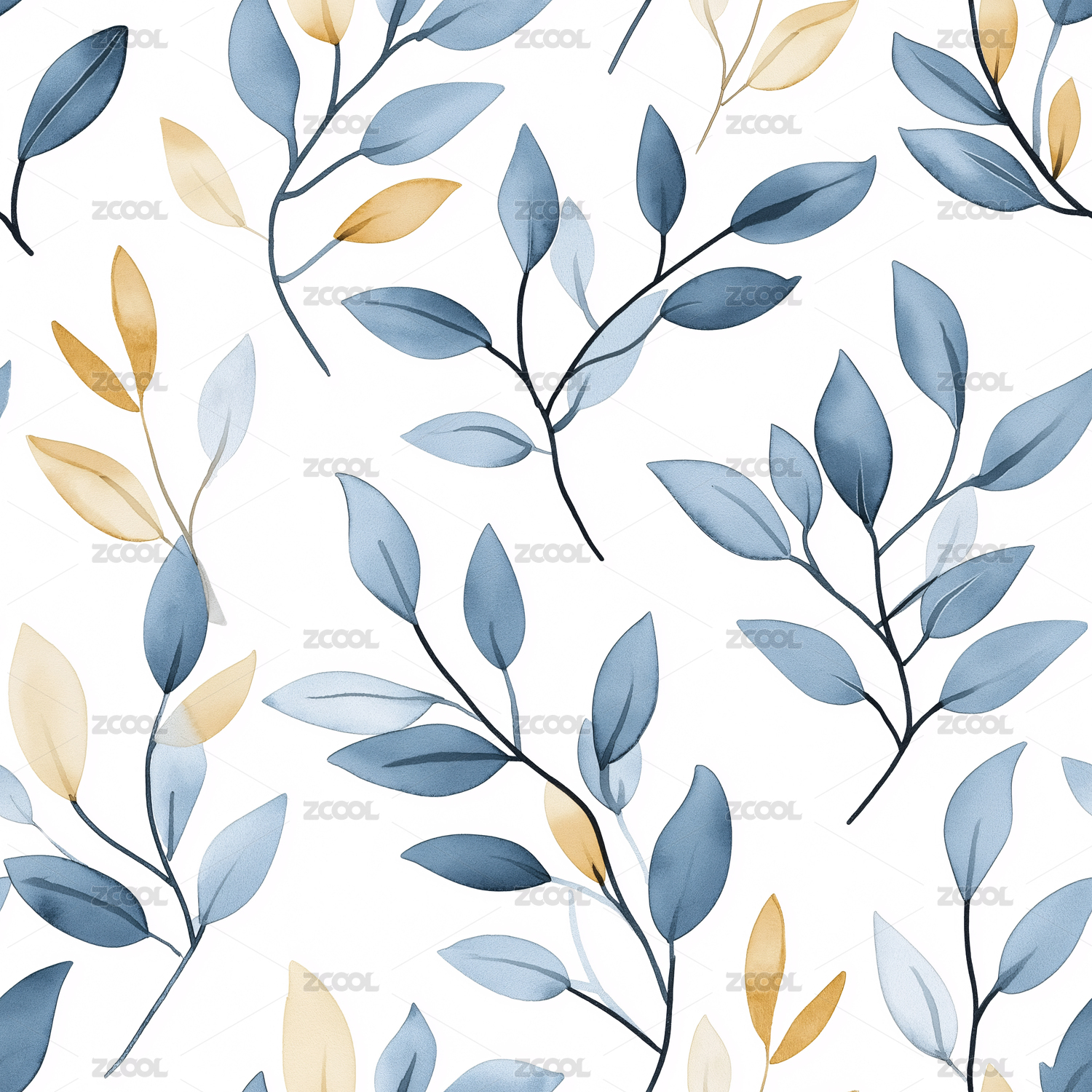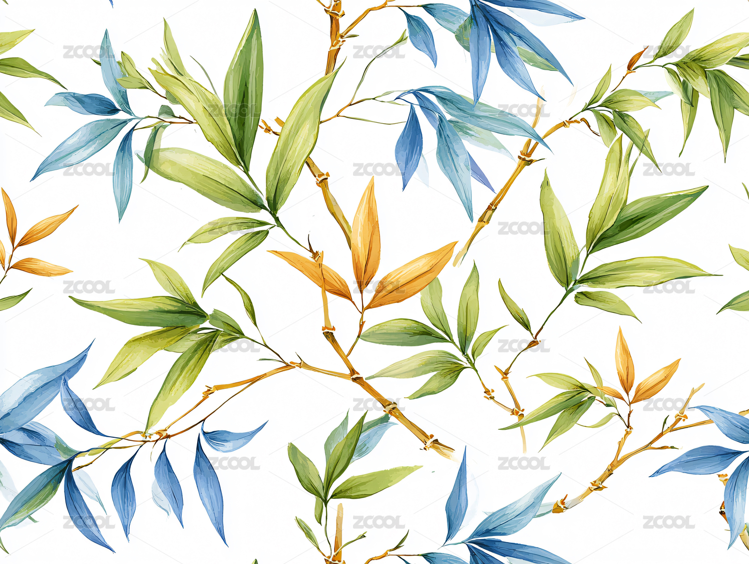 精致彩色竹叶叶子植物水彩无缝图案纹理