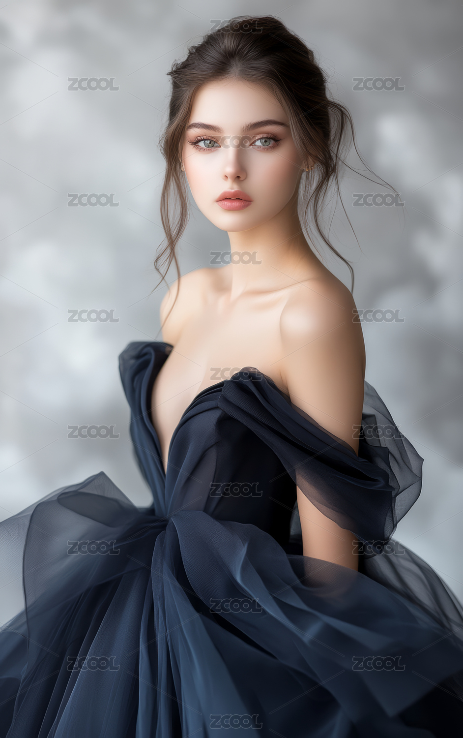 深蓝色调氛围美女穿星空裙美丽优雅时尚摄影