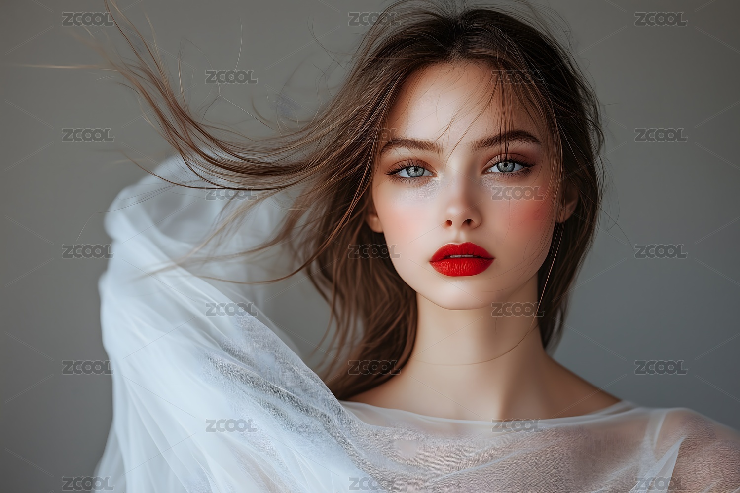 飘逸白纱衬托下的美丽女子