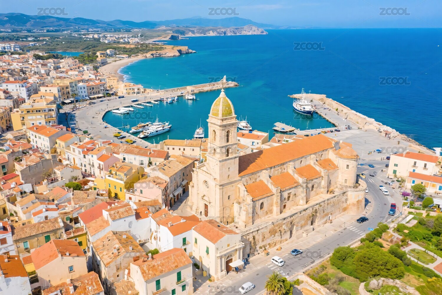海滨小镇与教堂俯瞰美景