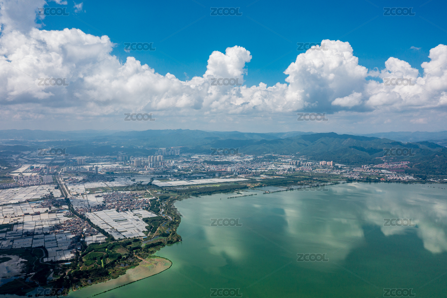 航拍视角,天空,云,蓝天,昆明,滇池,湖泊,绿地,航拍,自然