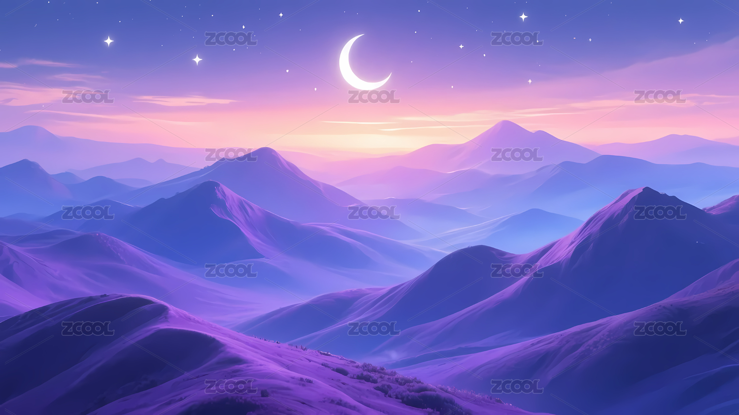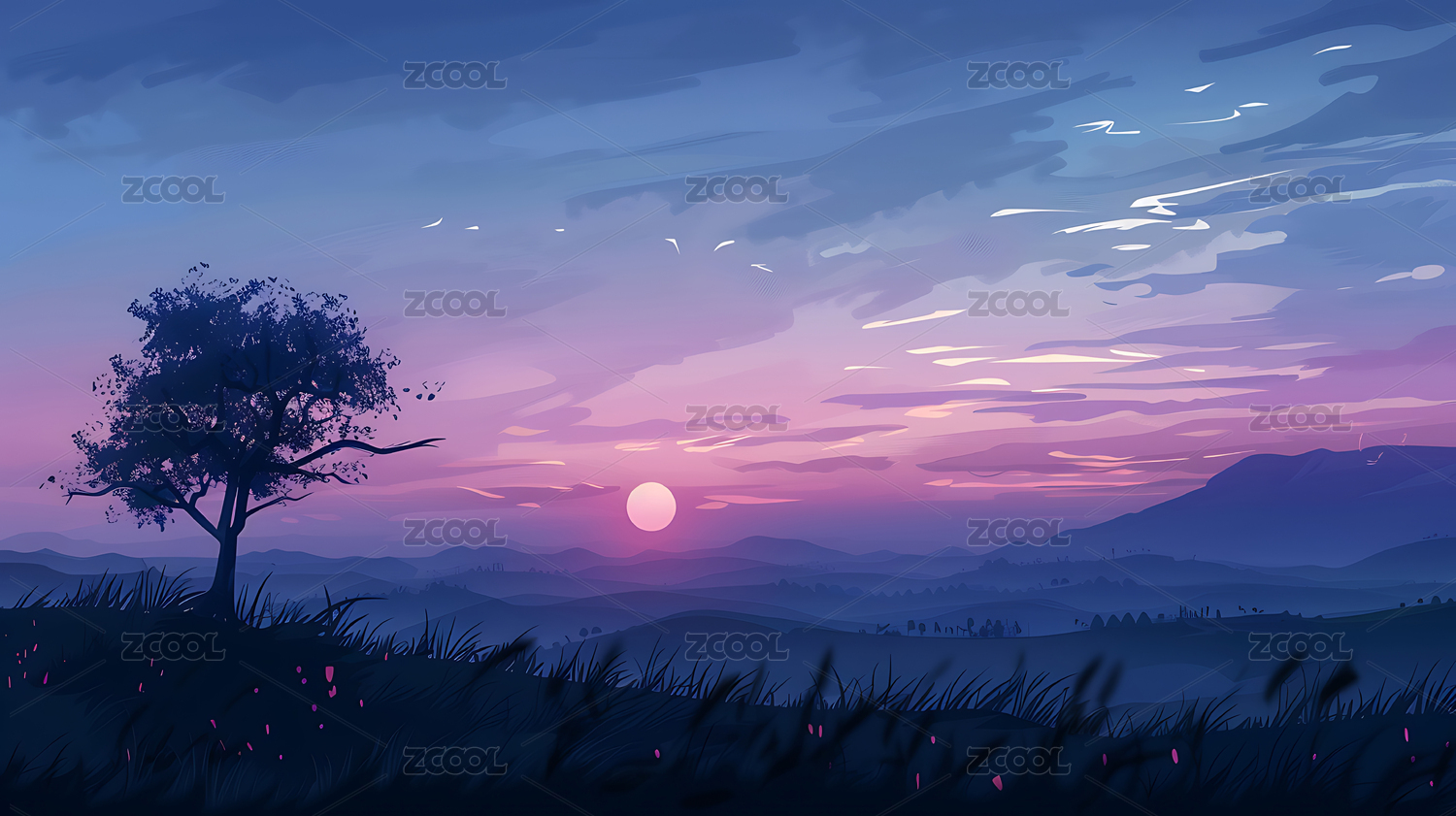 壁纸,夜晚,月亮,草原,晚霞,风景,屏保,傍晚