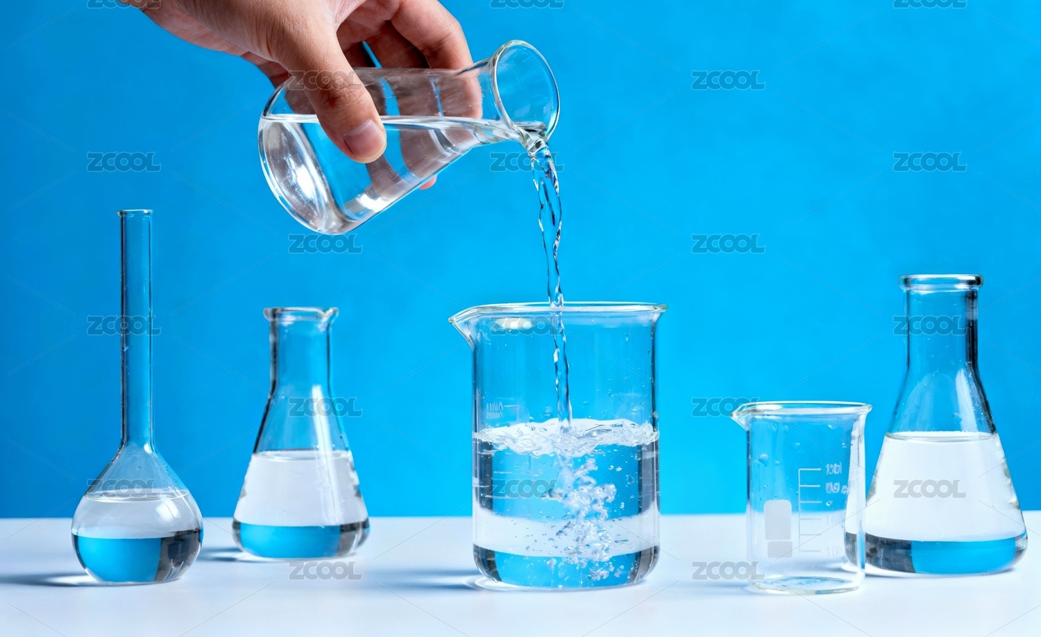 实验室烧杯蓝色液体实验