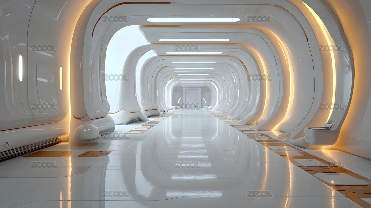 未来主义风格,室内场景传送门,门户,地板,深色,墙壁,天花板,细长灯光装饰,神秘科幻感,探索未知世界