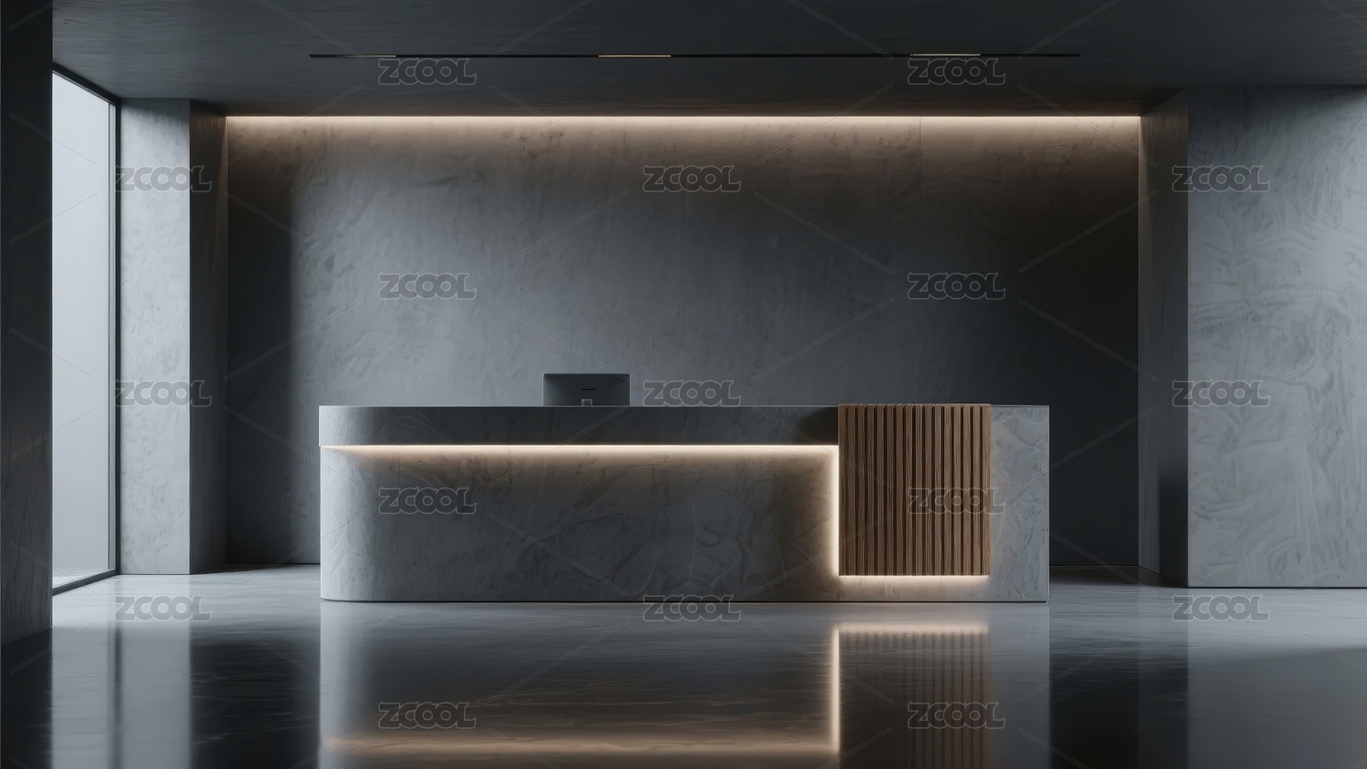 现代,室内设计,长方形,接待台,深灰色表面,渐变,浅蓝色底部,透明,玻璃水槽,植物装饰