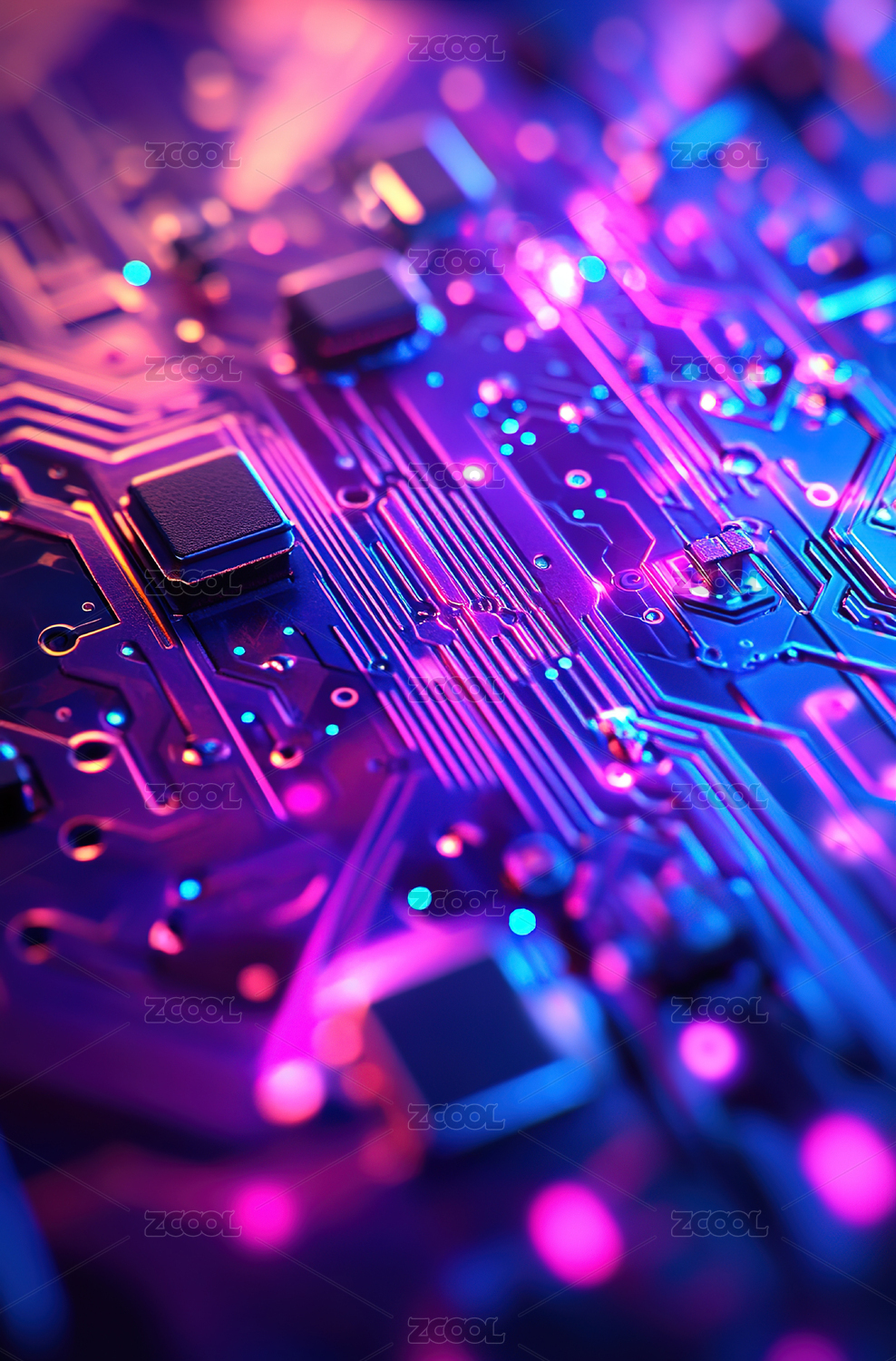 电路板上流动的电流科技概念